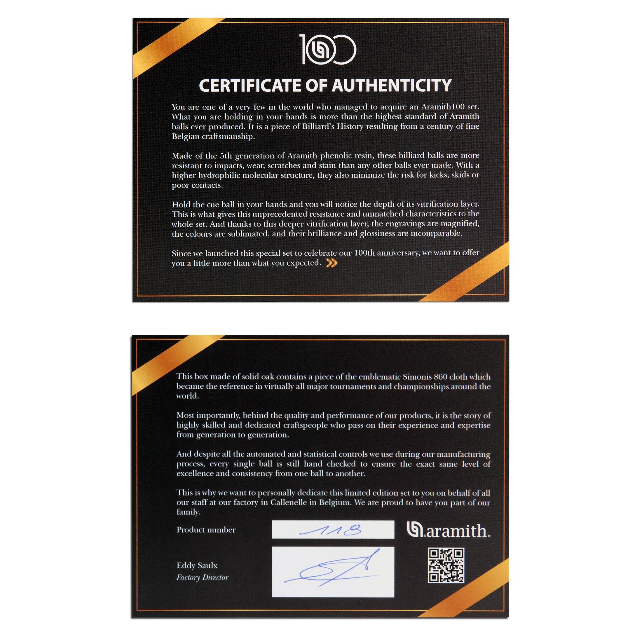 В честь 100-летия, ведущий мировой производитель бильярдных шаров Aramith представляет Aramith100 – эксклюзивный коллекционный набор шаров для пула. Этот уникальный продукт не только устанавливает новый стандарт качества в индустрии, но и является символом многолетнего мастерства и инноваций.