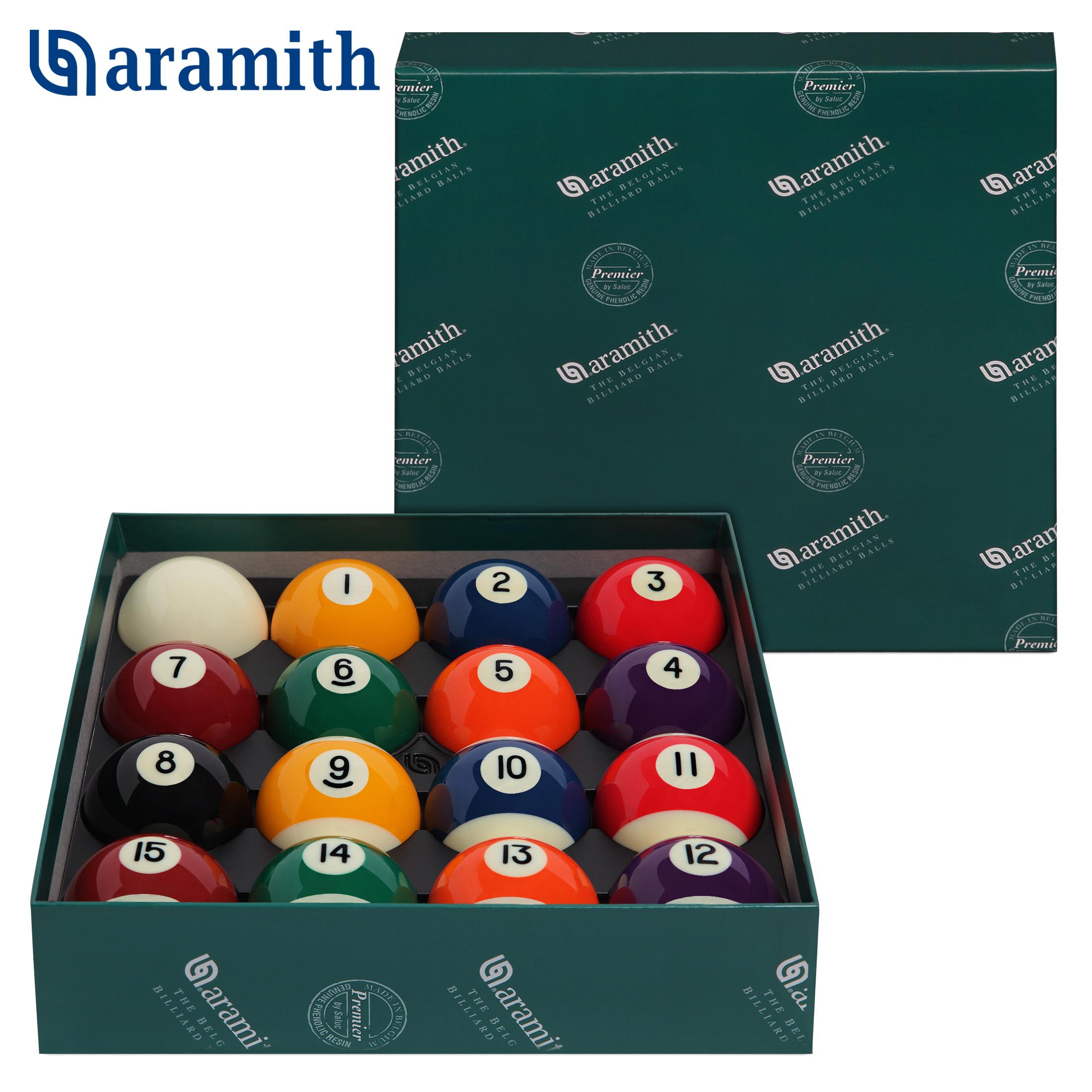Шары Aramith Premier сделаны из высокотехнологичной фенол-альдегидной смолы и проходят многоступенчатый контроль качества по целому ряду параметров: оцениваются их плотность, однородность, диаметр и округлость, вес и упругость, а также качество изображения и полировки поверхности.