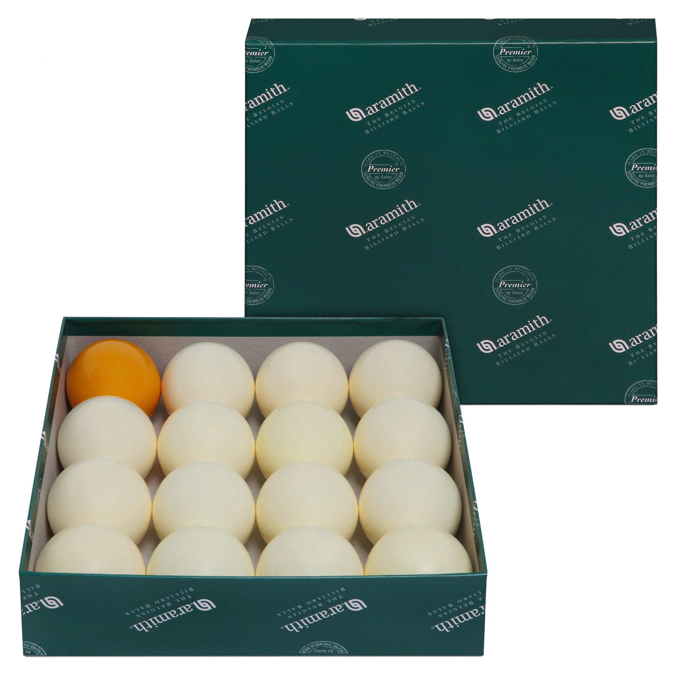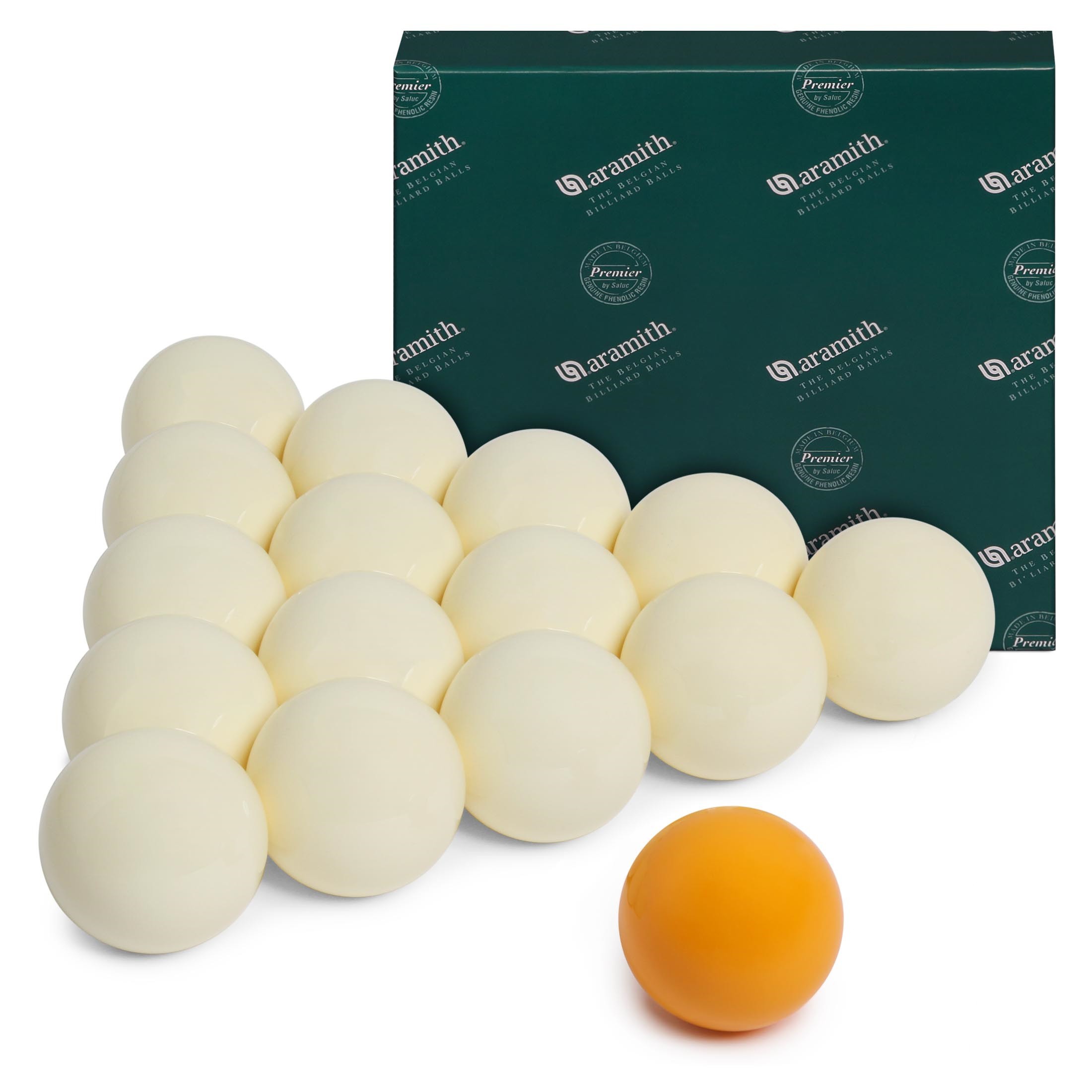 Шары Aramith Premier сделаны из высокотехнологичной фенол-альдегидной смолы и проходят многоступенчатый контроль качества по целому ряду параметров: оцениваются их плотность, однородность, диаметр и округлость, вес и упругость, а также качество изображения и полировки поверхности.