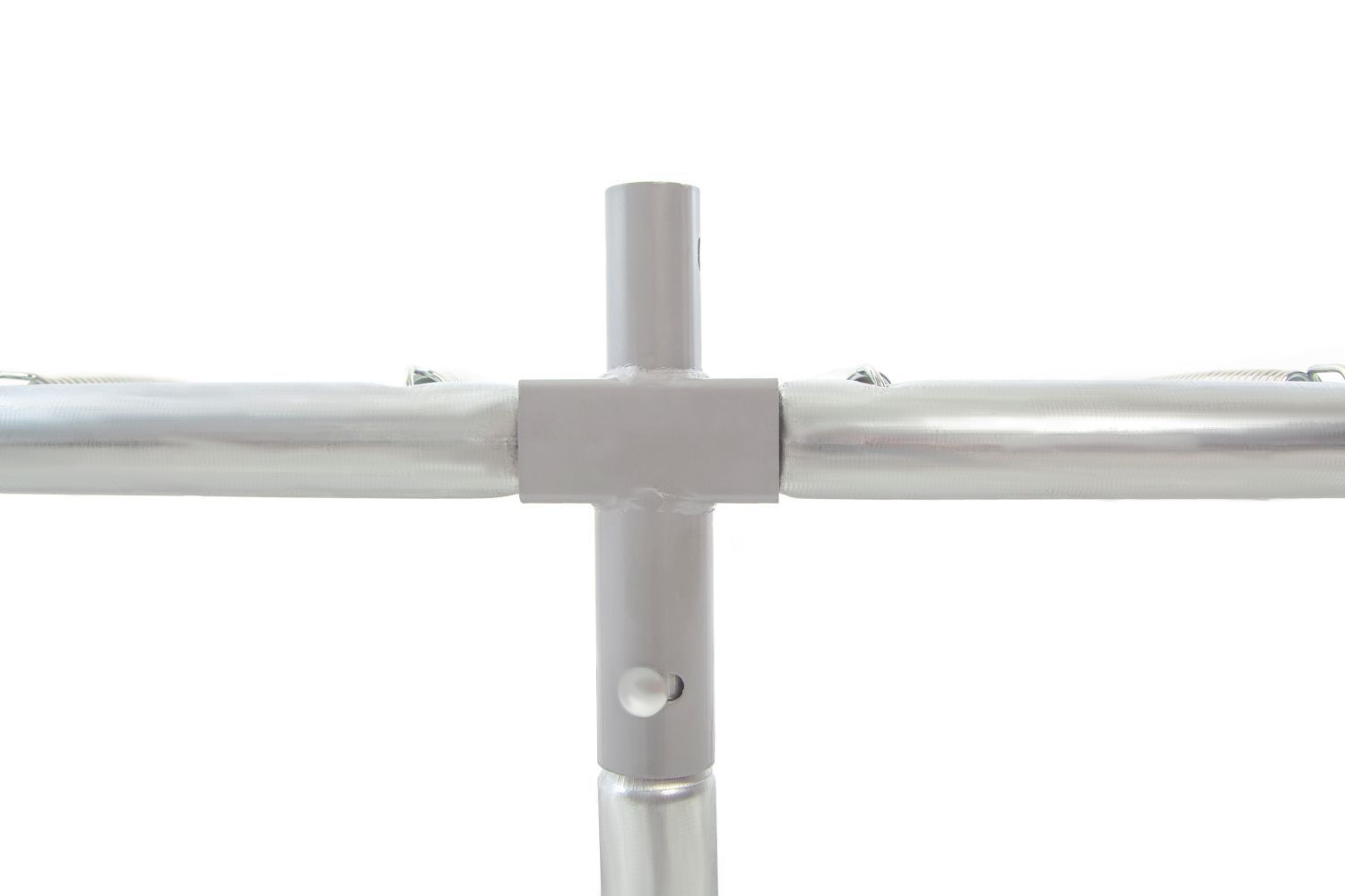 Батуты Domsen Fitness™ серии Gravity изготавливаются из высокопрочной стали диаметром 38 мм и толщиной до 2,5 мм с двойным слоем оцинкованного антикоррозийного покрытия. Рама батута - это металлический каркас и один из самых важных элементов. Рама соединяется между собой с помощью специального коннектора (X –Conneсtor) толщиной 2,5 мм, это самая надежная на сегодняшний день система соединения рамы, так как в данной системе не используется никаких пластиковых шайб и прочих недолговечных элементов. Гарантия на раму батутов Domsen Fitness™ - 2 года!