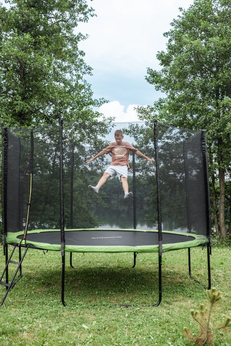 Прыжковое полотно батута устойчиво к ультрафиолету и воде, что гарантирует его долговечность и возможность использования в любых погодных условиях. Оснащенный защитной сеткой и прочным металлическим корпусом с гальваническим покрытием, батут станет безопасным местом для игр детей на свежем воздухе.