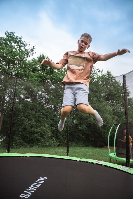 Диаметр батута составляет 374 сантиметров. Батут оснащен 3-мя U образными ножками как у старшей модели, что позволяет ему выдерживать повышенные нагрузки за счет более компактной конструкции. Максимальный вес пользователя составляет 180 кг. Одновременно на батуте может находится только один пользователь. Каркасный батут Sundays Champion-D374 отличный батут для дачи и детей. Этот батут идеально подходит для детей и взрослых, которые хотят весело провести время на свежем воздухе, не беспокоясь о своей безопасности.