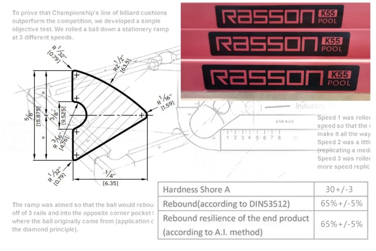 Изготовленная из натурального каучука с использованием специального процесса вулканизации, бортовая резина Rasson K55 гарантирует более стабильный отскок и долговечность.