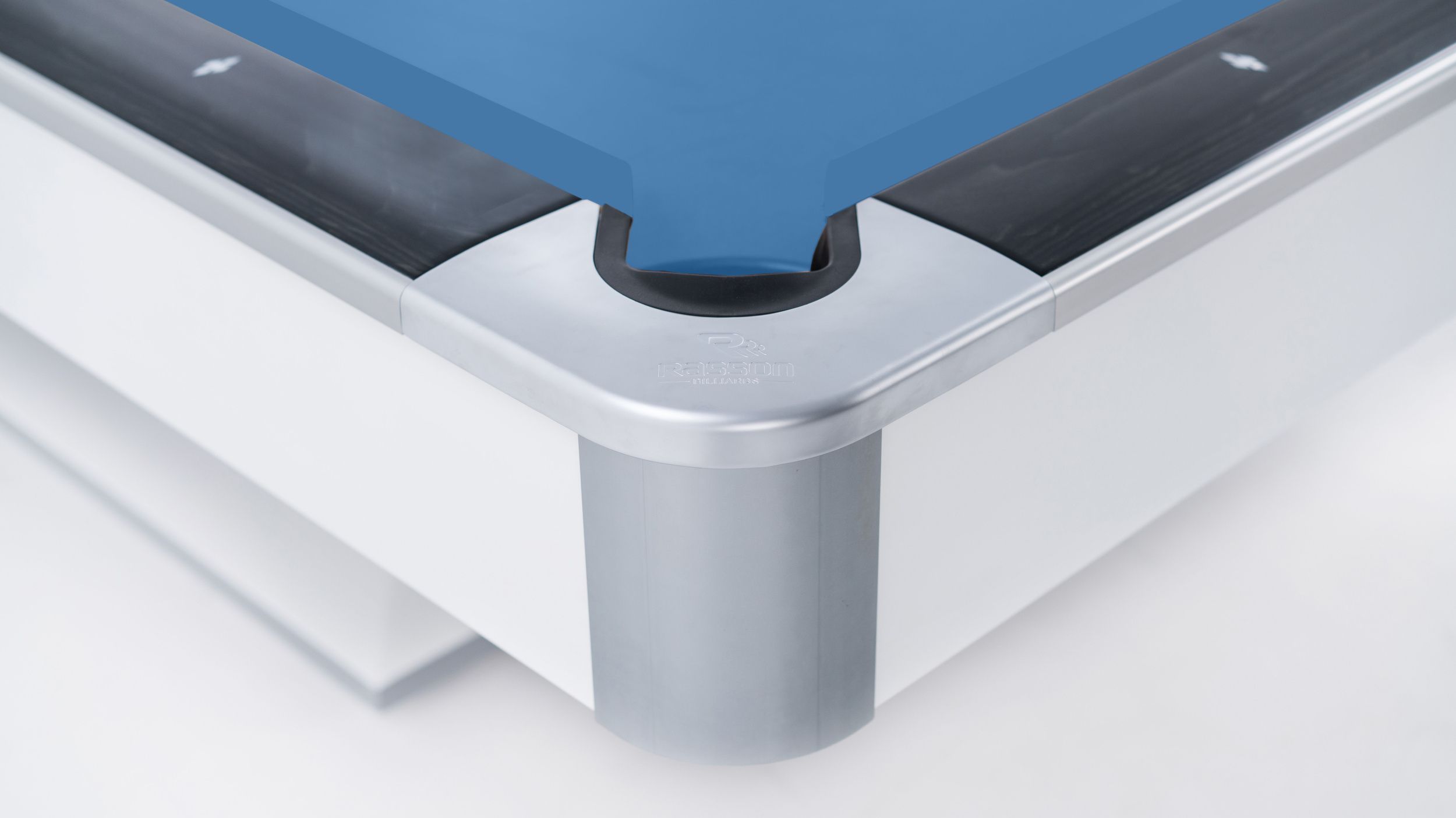 И вновь патент компании Rasson — технология изготовления луз из термопластичного эластомера. Этот материал намного ближе к силиконам по свойствам, чем к пластикам и резине. Вообще, запатентованы не сами лузы, а Т-образный паз, который позволяет быстро и легко монтировать стаканы. Термопластичный эластомер поглощает звуки и обладает высокими амортизирующими параметрами. Вместимость луз — 10 шаров.
