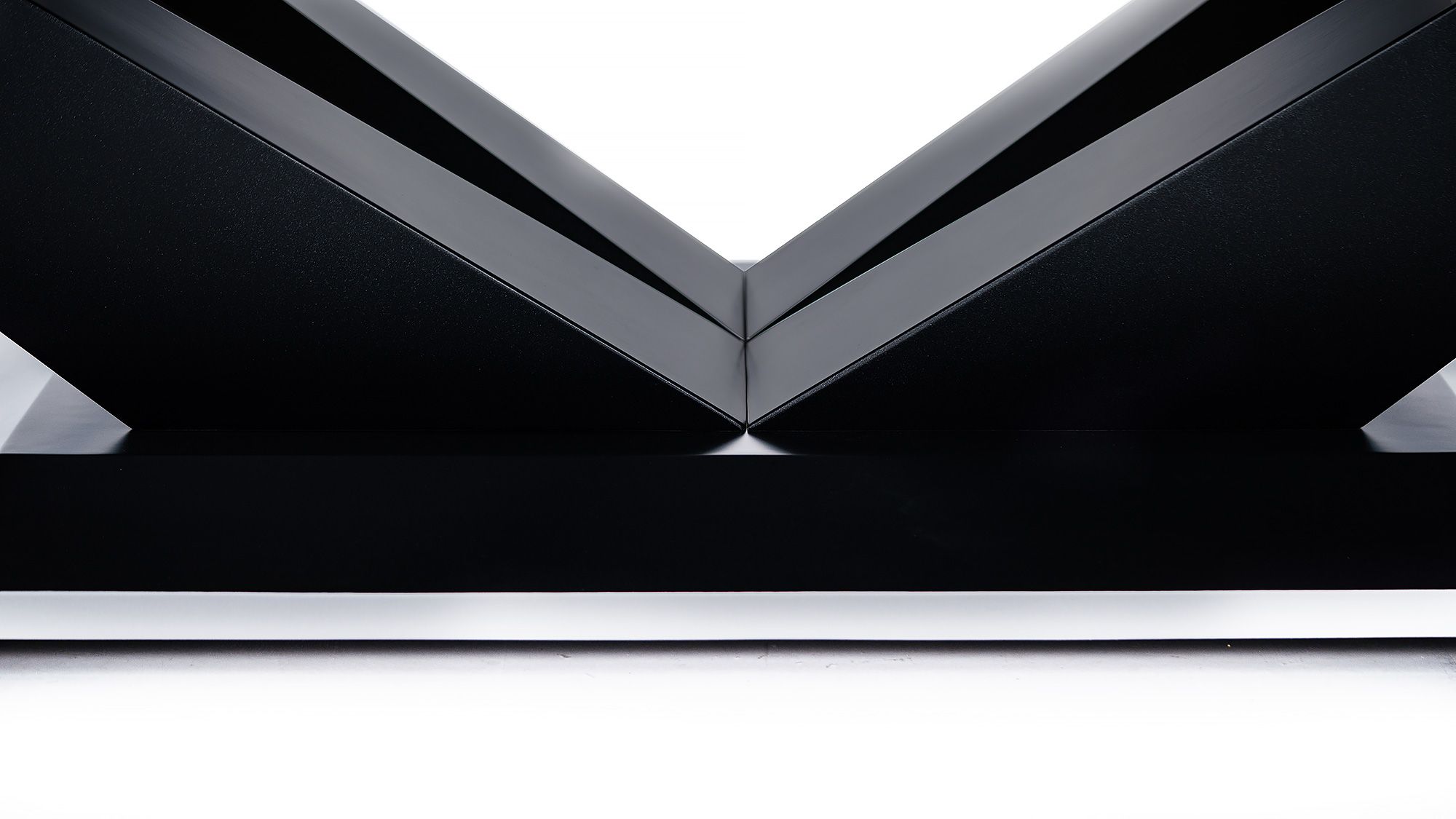 - Имеет уникальную конструкцию ног в форме буквы V, которая просматривается со всех сторон стола.