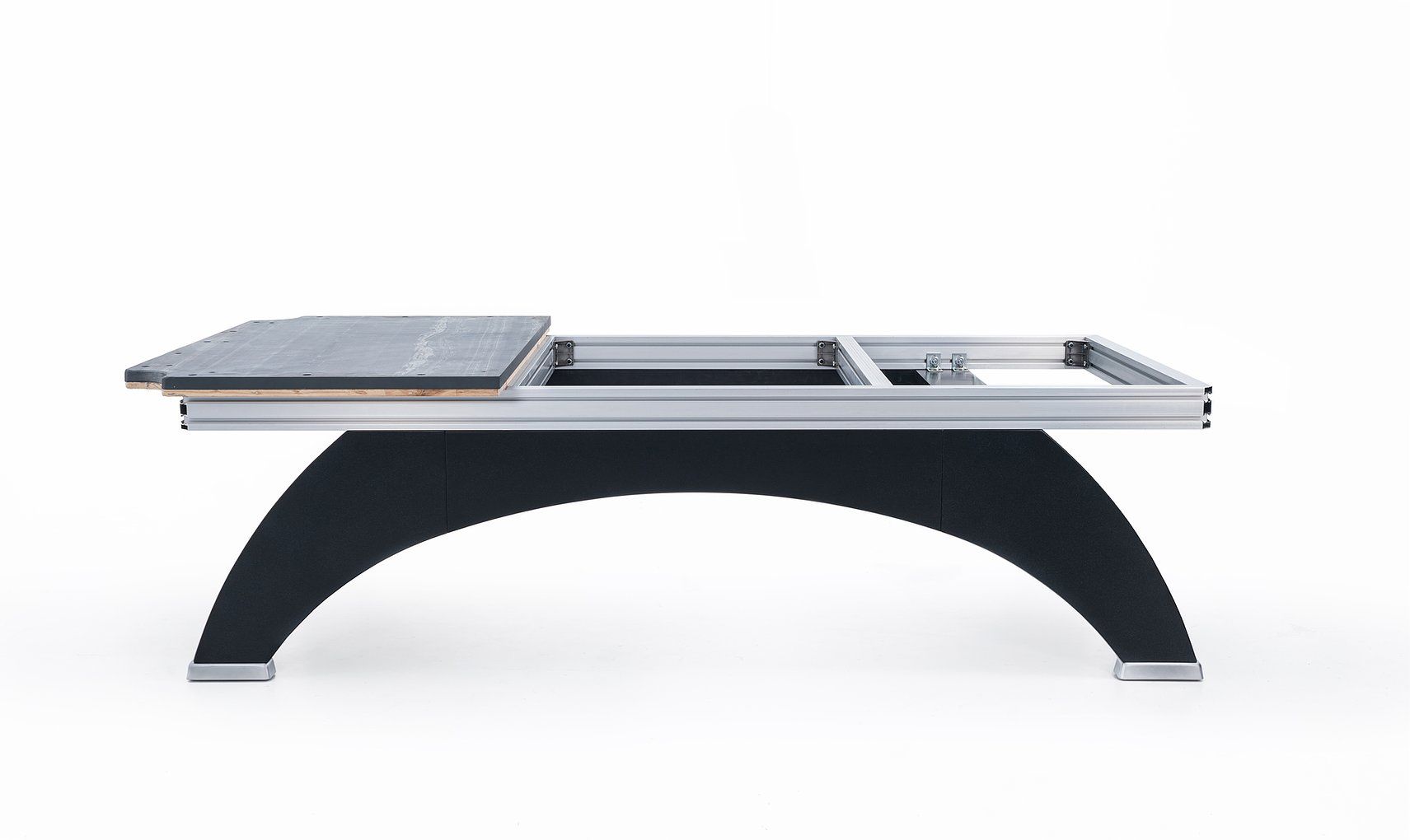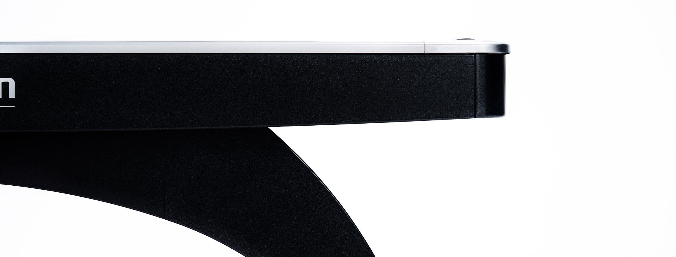 С первого взгляда OX поражает своим минималистичным, продуманным до мелочей дизайном. Глубокий черный цвет, устойчивая форма ног, плавные линии — здесь нет ничего лишнего. Всё подчинено одной цели: не отвлекать, обращая весь фокус внимания на процесс игры. Это стол, который говорит сам за себя, не нуждаясь в лишних украшениях.