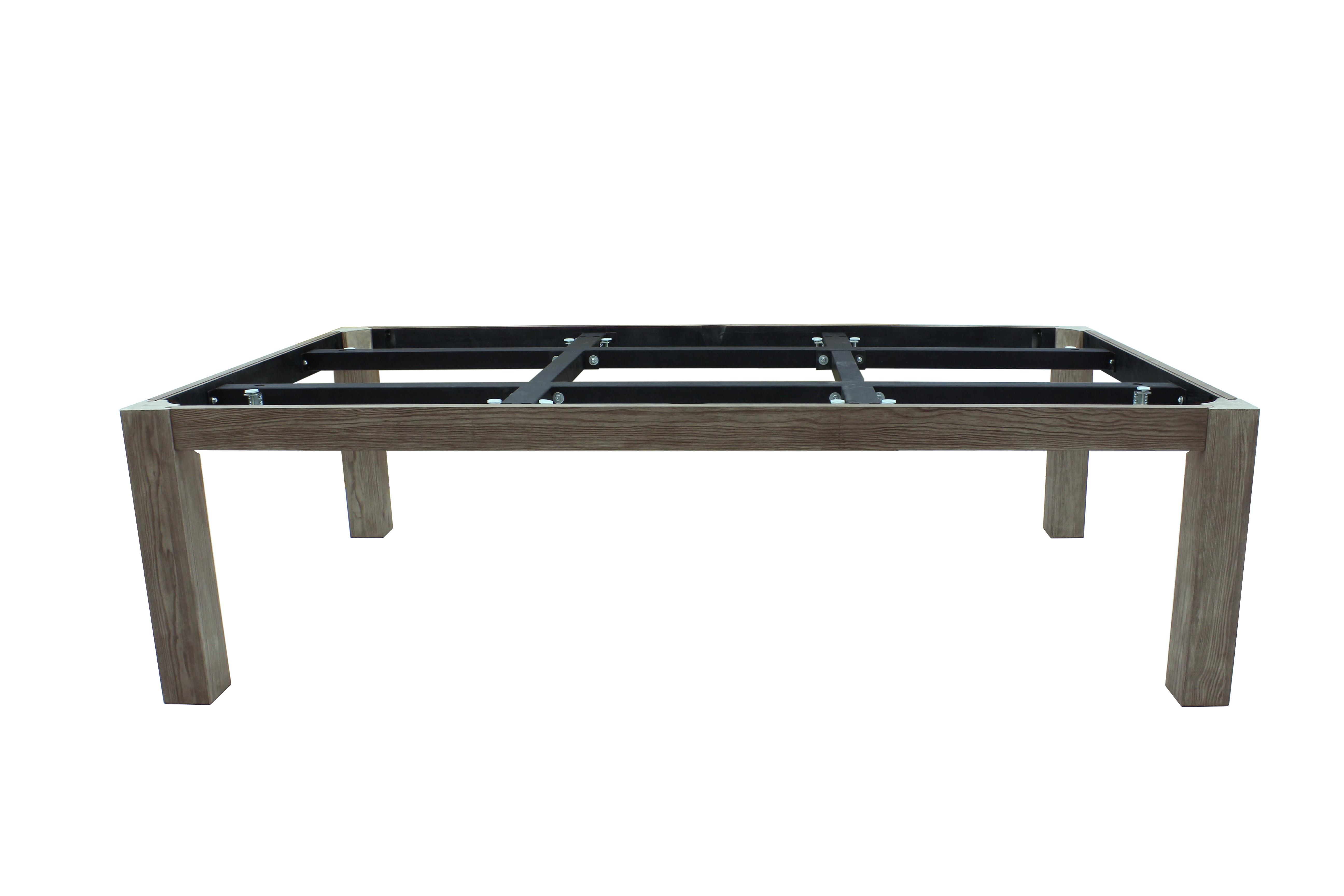 Каркас и борта стола выполнены из массива дерева твёрдых пород, усиленного металлической рамой. Вес конструкции 340 килограммов гарантирует монолитную устойчивость даже при самых активных партиях. Никаких вибраций и смещений — только чистый, просчитываемый отскок. Ножки стола также снабжены выравнивателями, позволяющими установить Rasson идеально ровно на любом полу, даже с перепадами высот.