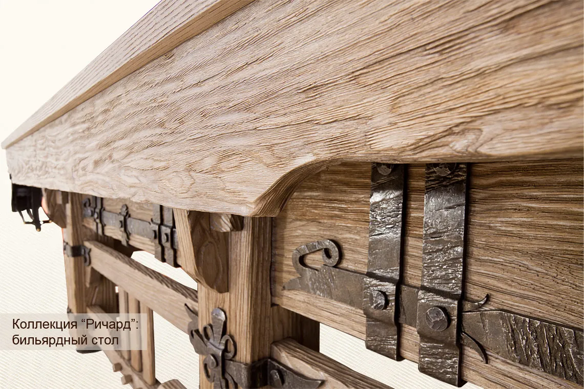 К бильярду "Ричард" предлагается целый набор коллекционных изделий, выполненных в одном стиле, с элементами ручной ковки.