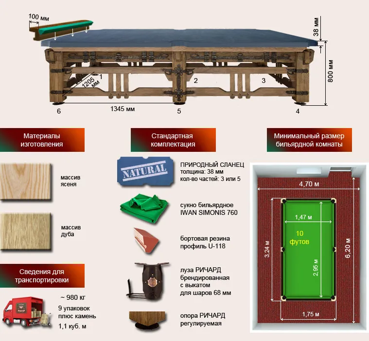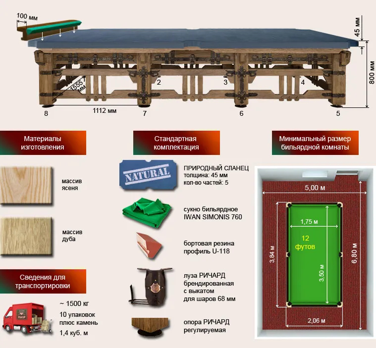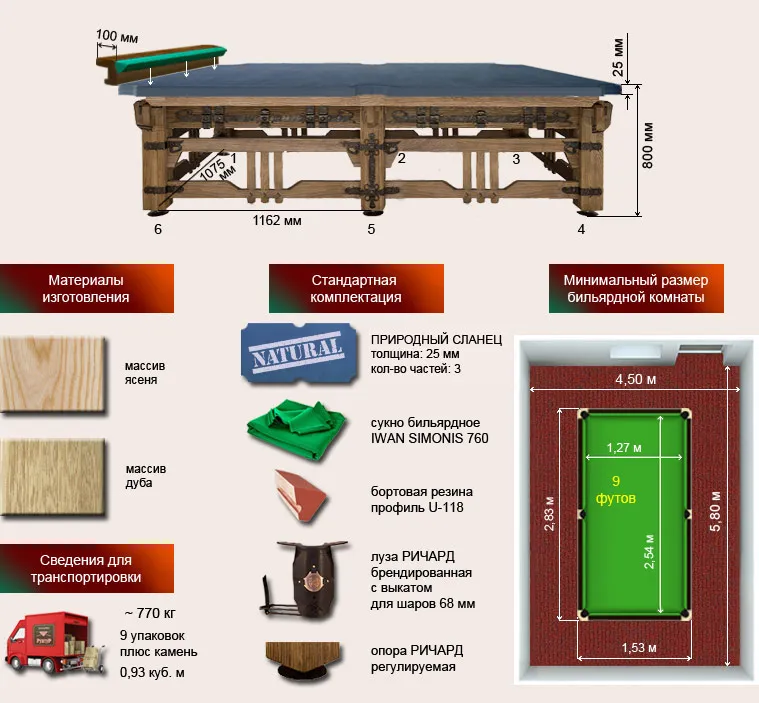 Бильярдный стол, выполненный в старом замковом стиле. В конструкции использовано множество массивных кованых элементов. Для создания грубой поверхности деревянных деталей разработчики использовали особый прием, который исключает любые повреждения играющего на бильярдном столе "Ричард".