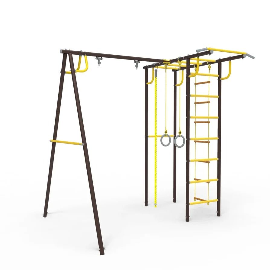 В комплектацию УДСК "Тарзан Мини 3" входит: рукоход, кольца гимнастические, канат, лестница веревочная, турник.