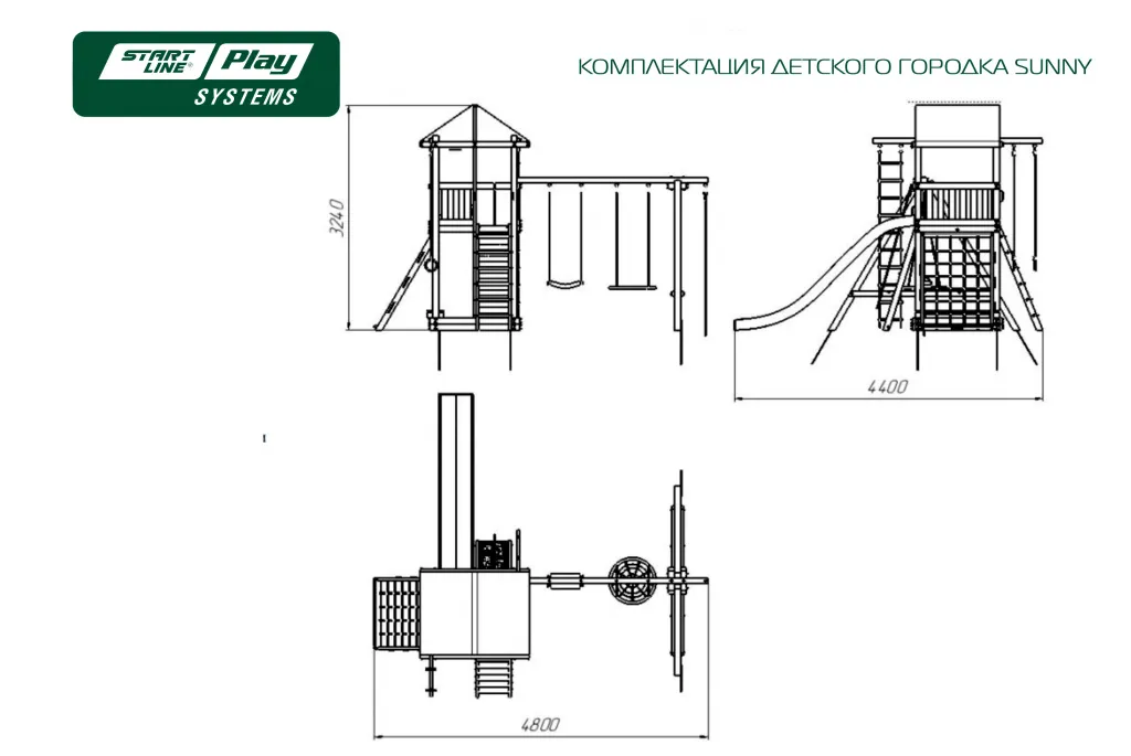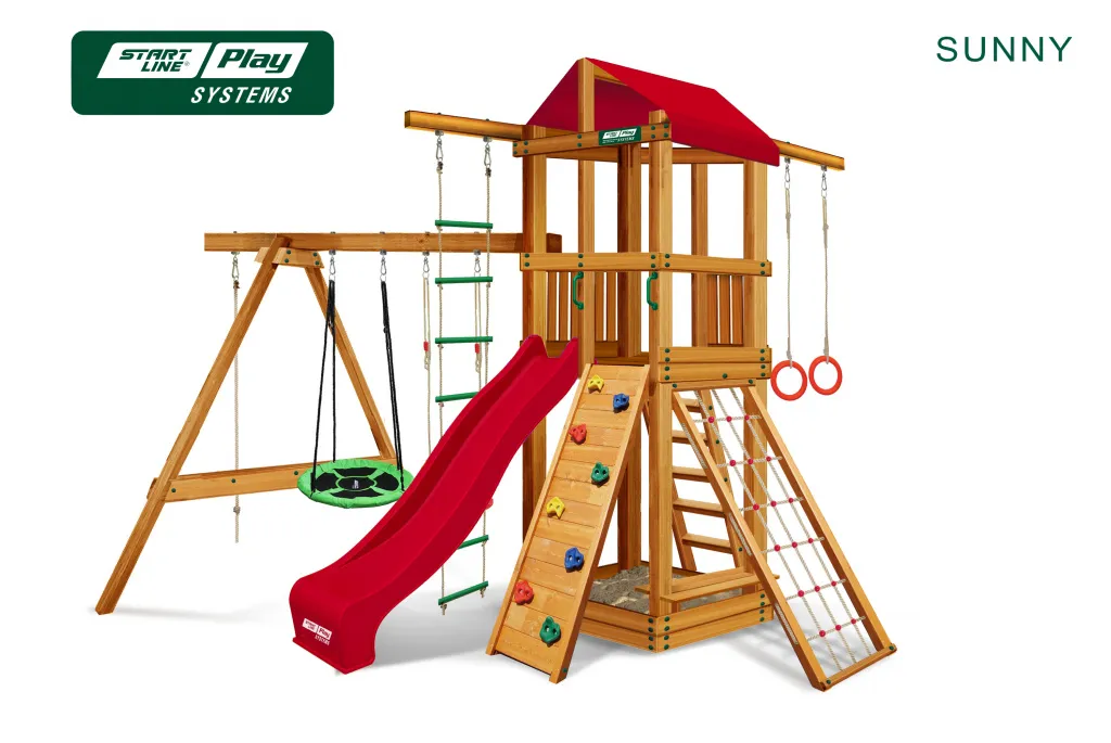 В производстве городка SUNNY стандарт используется дерево высокого качества, которое прошло профессиональную сушку. Каркас изделия изготовлен из клееного бруса сосны, ограждение и иные элементы из массива сосны. Древесина шлифованная и покрыта колерованной пропиткой высокого качества.