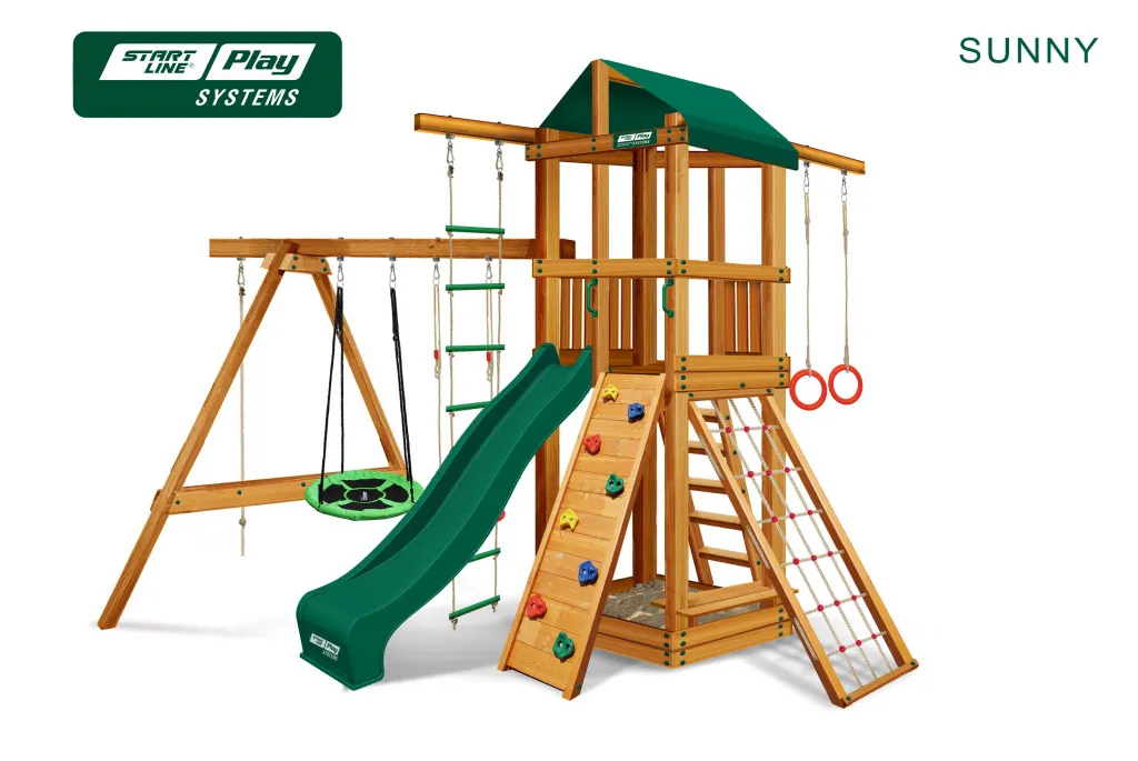 В производстве городка SUNNY стандарт используется дерево высокого качества, которое прошло профессиональную сушку. Каркас изделия изготовлен из клееного бруса сосны, ограждение и иные элементы из массива сосны. Древесина шлифованная и покрыта колерованной пропиткой высокого качества.
