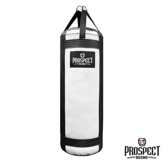 Боксёрский мешок черно-белый, с черными лямками и обручами