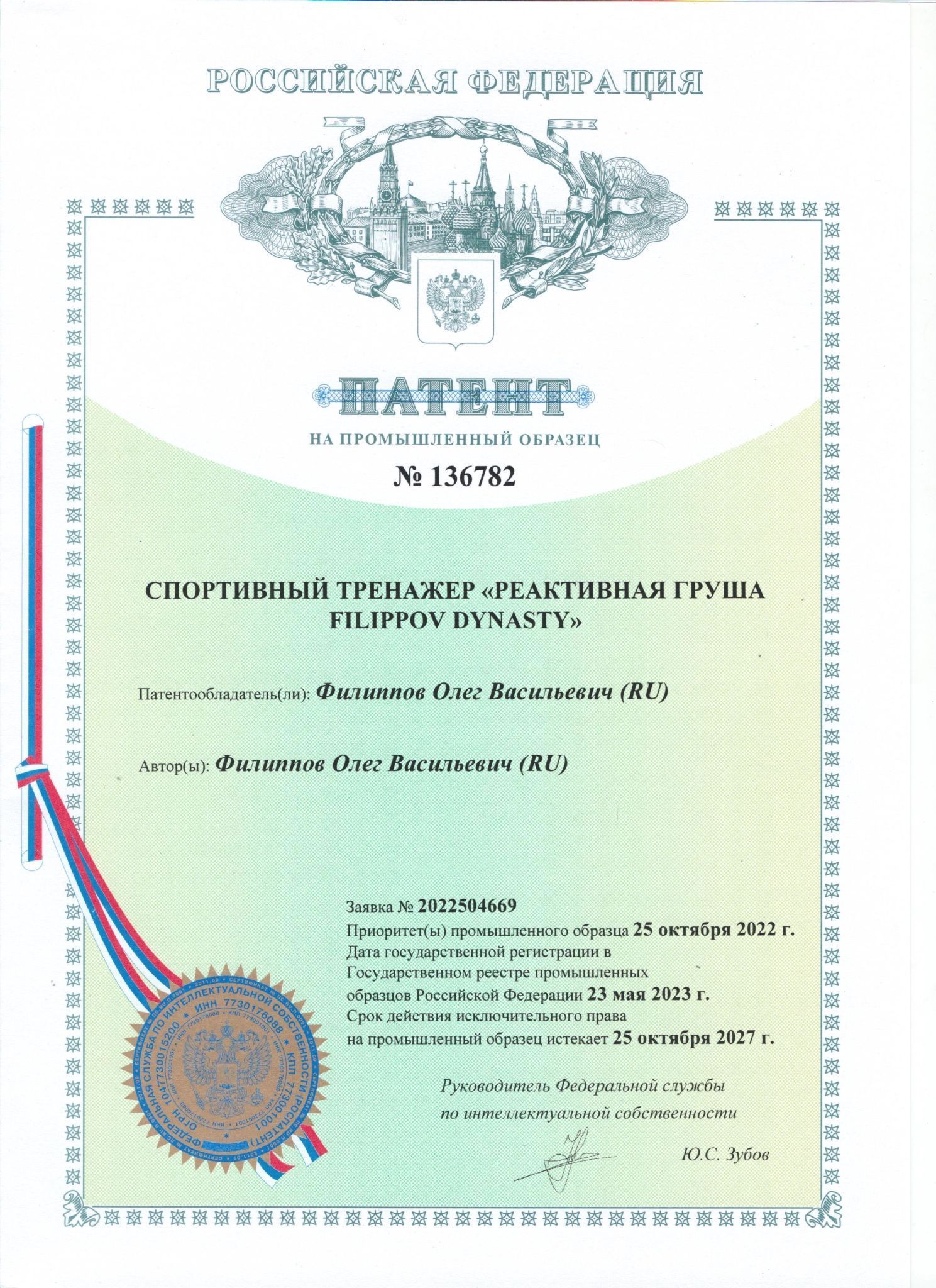 Запатентованная разработка российского бренда FILIPPOV DYNASTY. Патент № 136782.