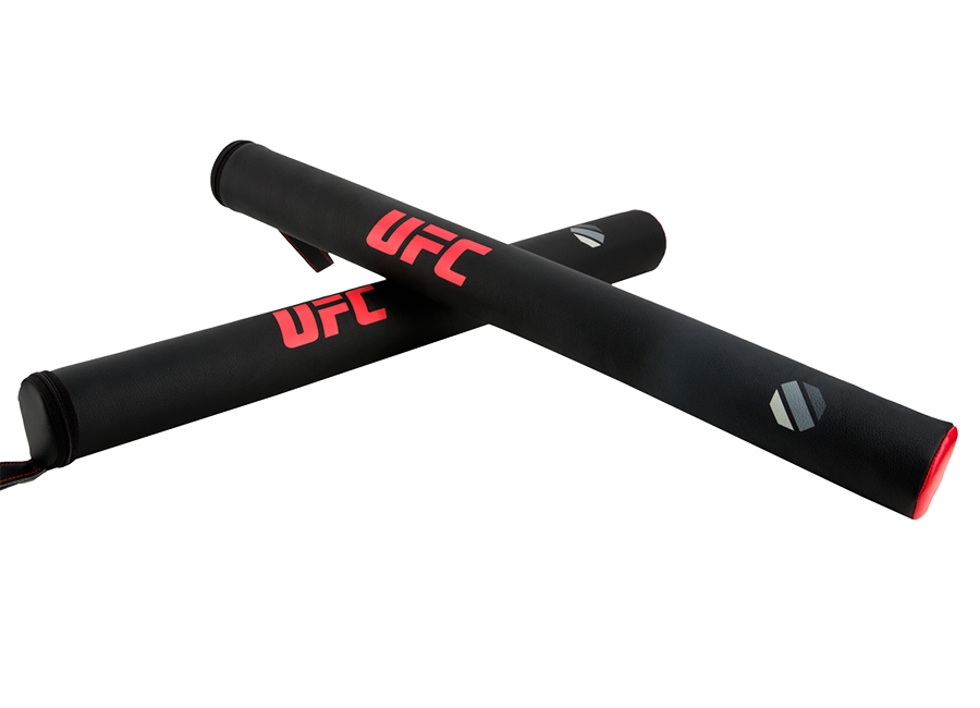 Тренировочные палочки UFC предназначены для интенсивных тренировок спортсменов разного уровня и являются хорошей альтернативой или дополнением лап. Особенностями тренировочных палочек является удобная ручка с дополнительным шнуром для запястья. Благодаря мягкой поверхности значительно снижается ударное болевое воздействие на плечи и локти. Регулярное использование палочек существенно улучшает технику при отработке защитных упражнений для ног и головы, в итоге улучшается точность, скорость и реакция.