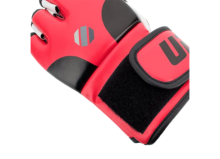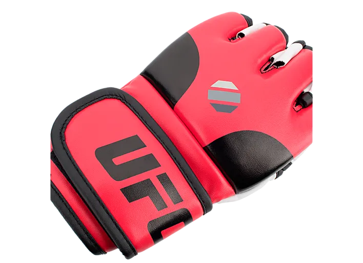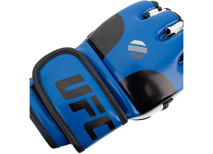 Тренировочные перчатки UFC имеют открытую конструкцию ладони, что позволяет значительно увеличить ловкость и диапазон движения, что важно для грэпплинга. Конструкция перчаток выполнена из долговечной синтетической кожи, удобная застежка на липучке имеет регулируемую форму. Для максимального удобства при занятиях грепплингом предусмотрены мягкие отсеки для пальцев. Дополнительной защитой рук служит многослойная пена в области удара.