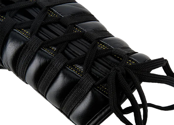 Премиальные тренировочные перчатки на шнуровке UFC изготовлены из натуральной воловьей кожи класса А. Слой пены Eva Foam обеспечивает максимальную защиту костяшек и большого пальца. В данной модели применяется традиционная система шнуровки с фиксацией и каналом для шнурка. Для охлаждения поверхности рук, а также для быстрой сушки предусмотрена перфорация кожи на ладонной поверхности перчаток.