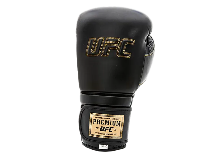 Премиальные тренировочные перчатки на липучке UFC изготовлены из натуральной воловьей кожи класса А. Слой пены Eva Foam обеспечивает максимальную защиту костяшек и большого пальца. Для охлаждения поверхности рук, а также для быстрой сушки предусмотрена перфорация кожи на ладонной поверхности перчаток. Надежную фиксацию и комфорт обеспечивает система застежки из твердой кожи на липучке.