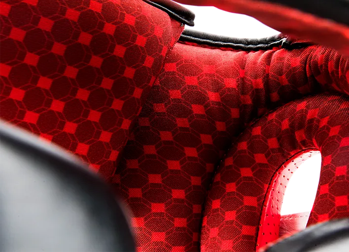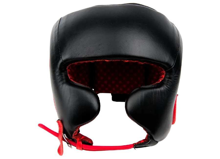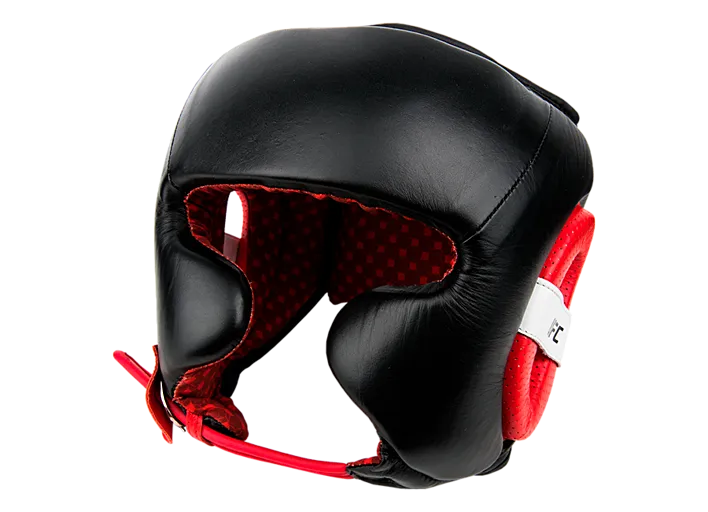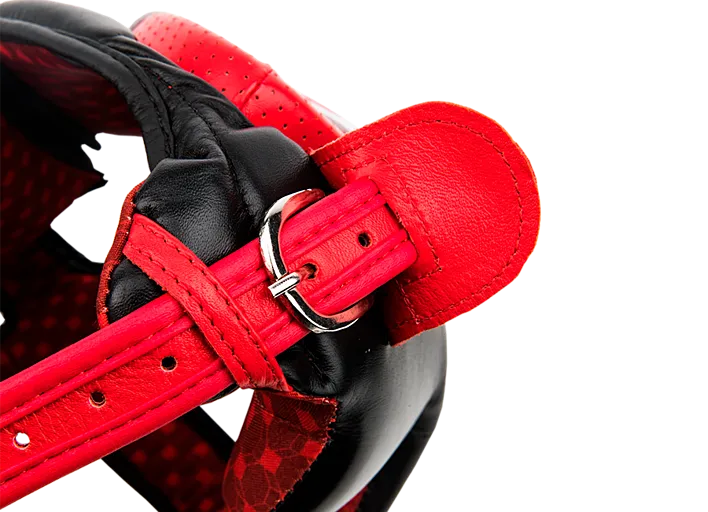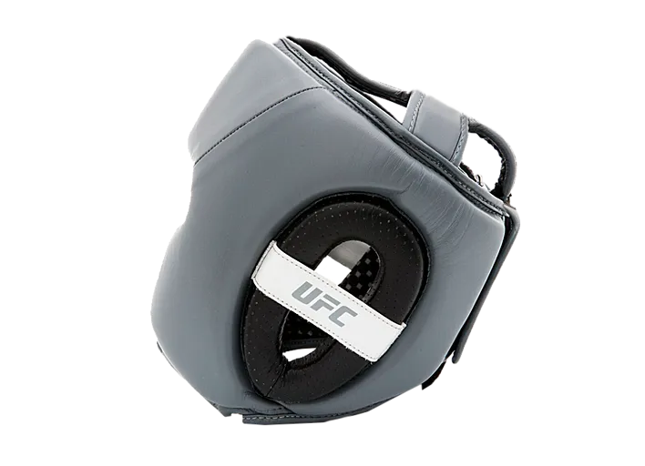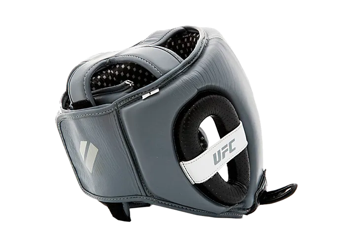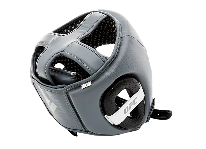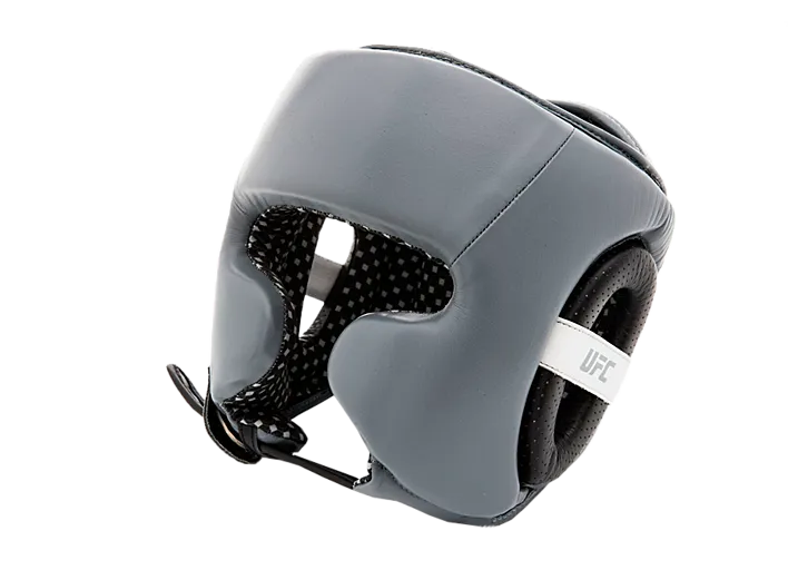 Тренировочный шлем UFC изготовлен из натуральной воловьей кожи класса А. Внутренняя часть шлема имеет нескользящую мягкую подкладку. Для защиты щек и подбородка применяется многослойная пена. Широкая липучка обеспечивает аккуратный вид и безопасность. Благодаря контурной защите щёк гарантирована полная безопасность.