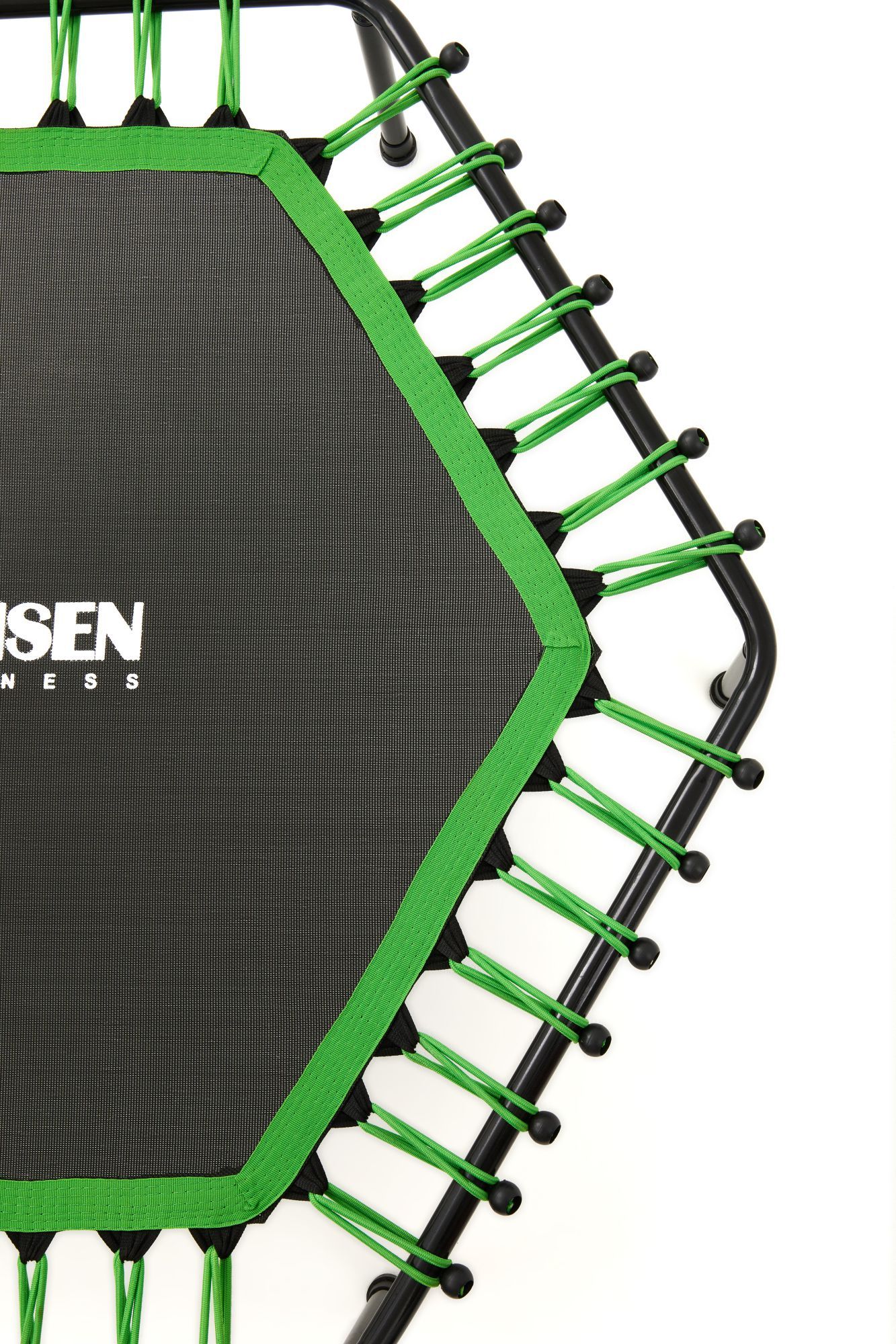 Прыжковое полотно из материала Permatron соединяется с рамой с помощью 42 эластичных жгутов. Эластичные эспандерные жгуты выполняющие роль пружин и прыжковое полотно из прочного упругого материала Permatron, покрытое специальным антискользящим составом обеспечивают хорошую упругость и безопасность при тренировках