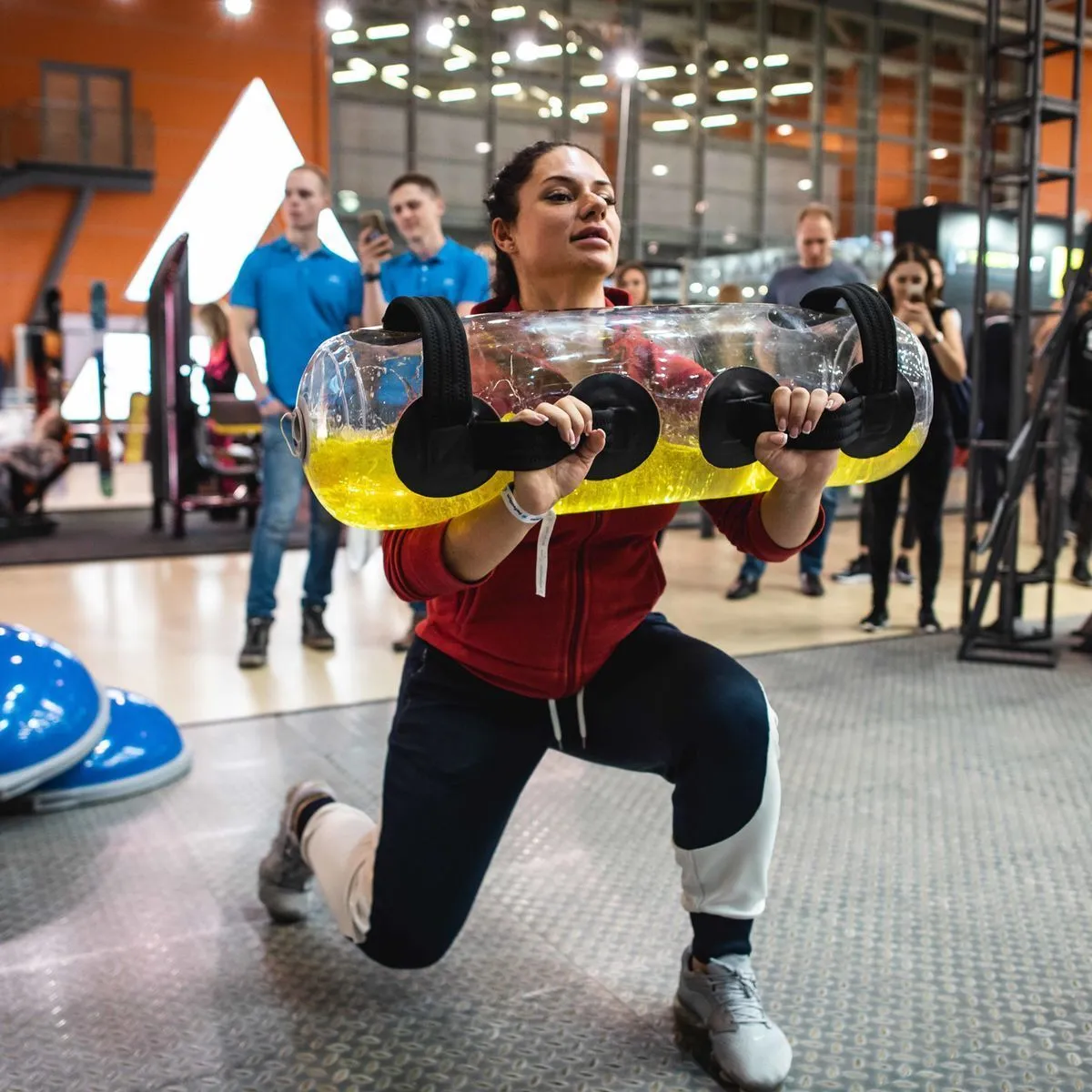 Корпус – плотный прозрачный ПВХ материал с логотипом PROFI-FIT по центру. Имеет 2 продольные и 2 поперечные ручки из стропы шириной 55 мм, обшитых неопреном, с тремя зигзагообразными декоративными строчками.