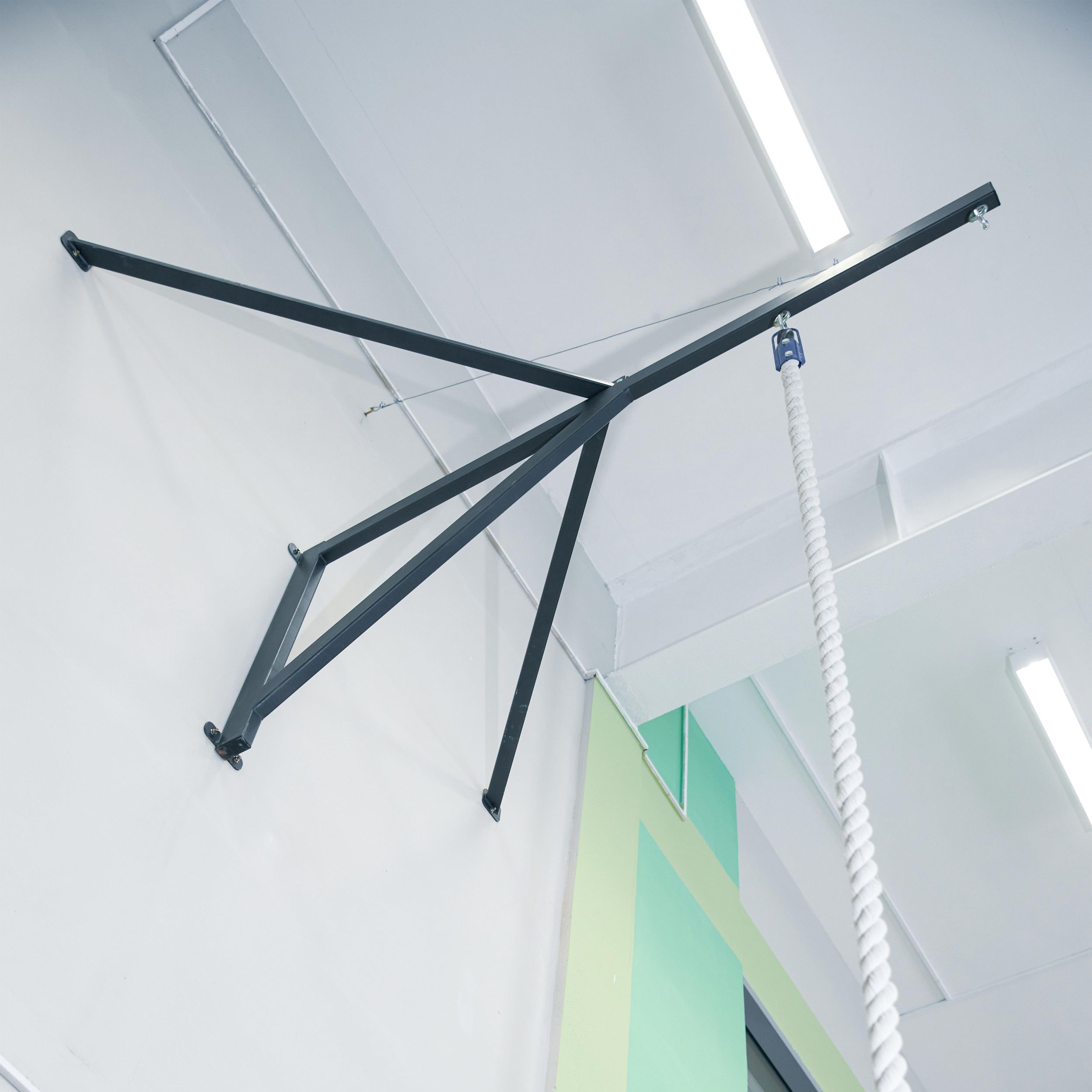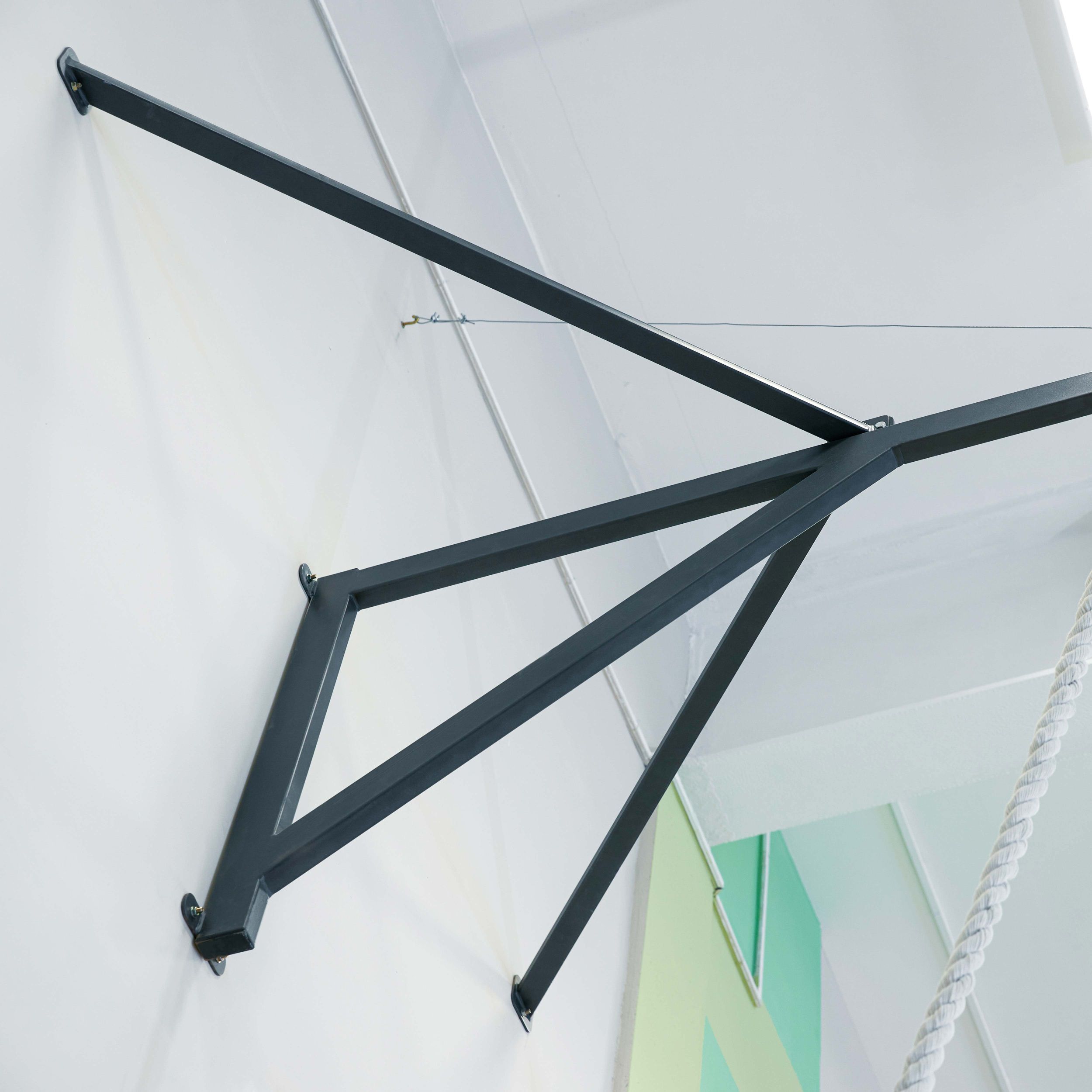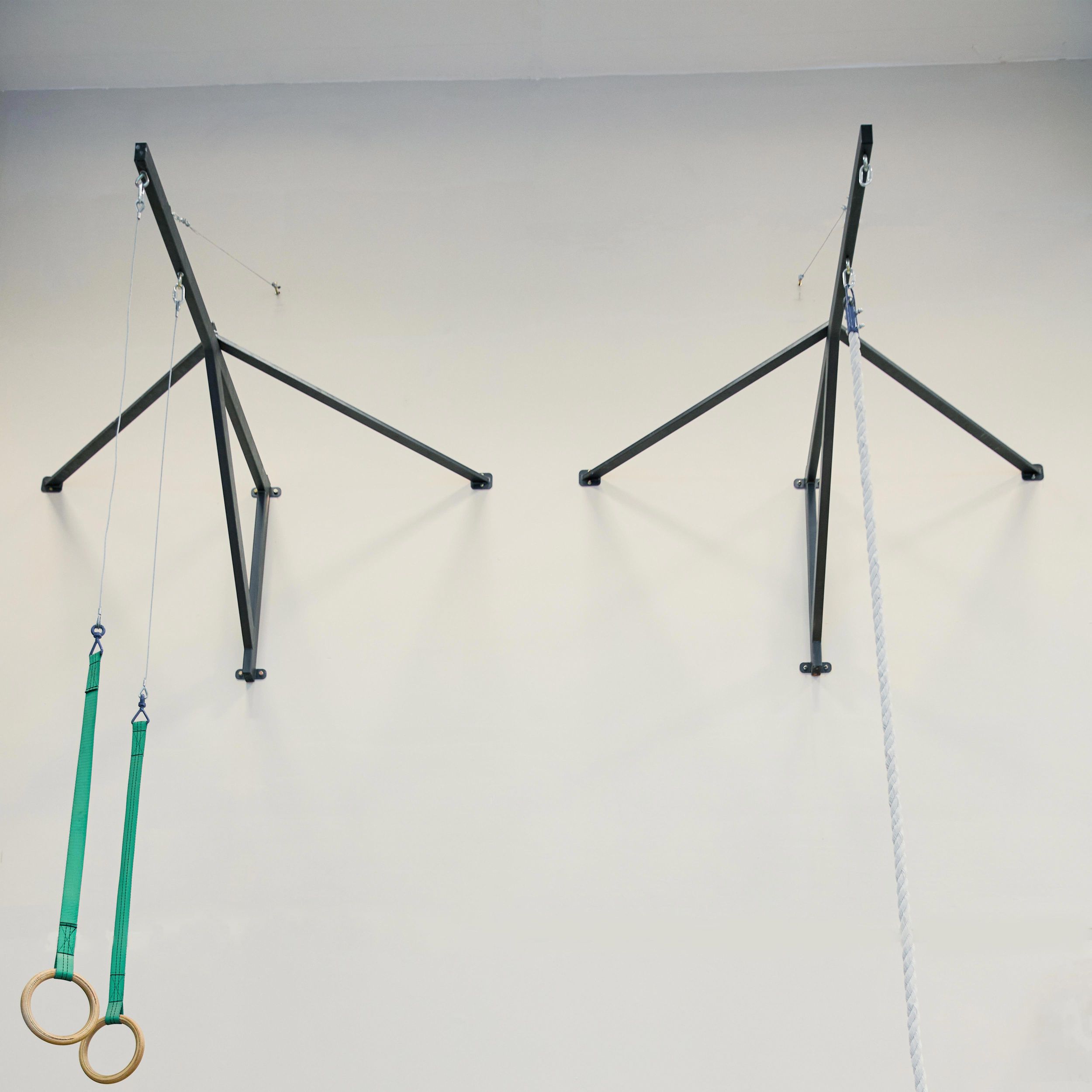 Рекомендуется устанавливать дополнительные растяжки (на конструкции предусмотрено жестко приваренное кольцо для крепления дополнительных растяжек), для увеличения несущей нагрузки и повышения жесткости. При использовании гимнастических колец на консоли, установка дополнительных растяжек ОБЯЗАТЕЛЬНА.