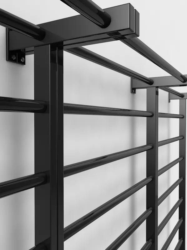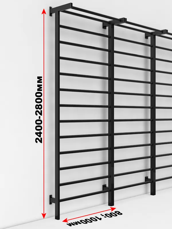 Шведская стенка  для выполнения гимнастических упражнений. Боковые части и перекладины изготовляются из металла. Крепление к стене осуществляется анкерными болтами.