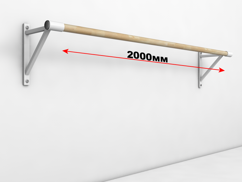 Длина поручня 2м, диаметр 47мм, материал бук. Общий вес конструкции 6кг.