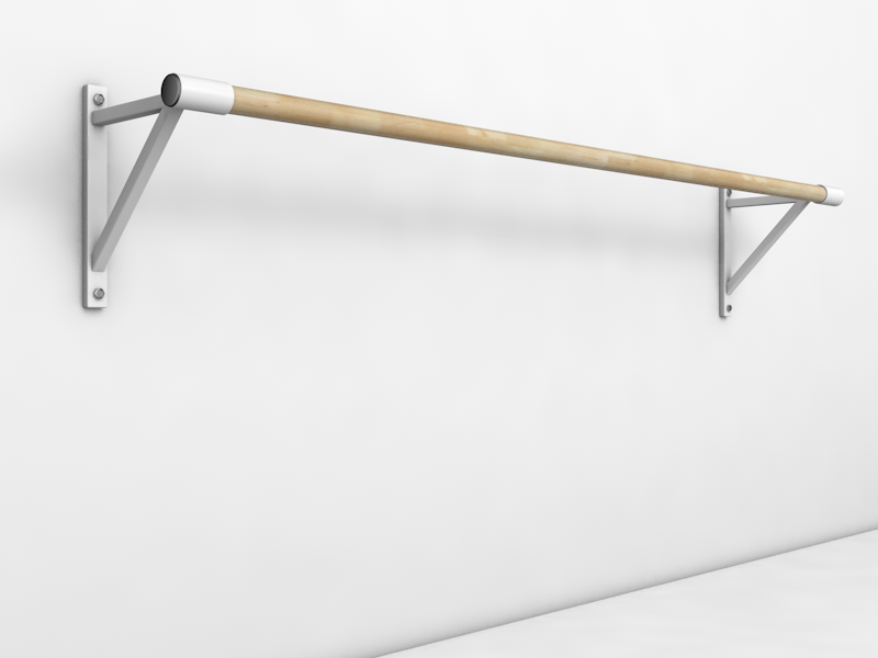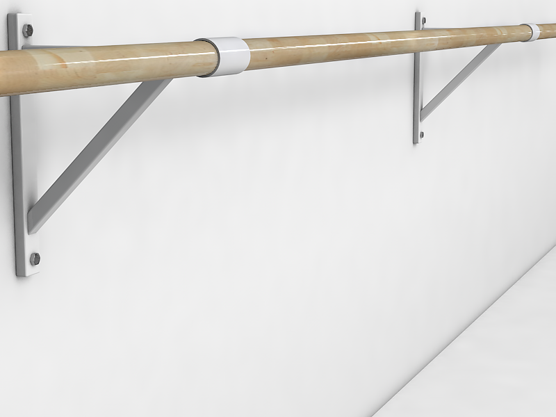 Балетный станок крепится к стене. В каждом кронштейне предусмотрены 2 отверстия для крепежа. Вид крепежа зависит от конструкции стены.