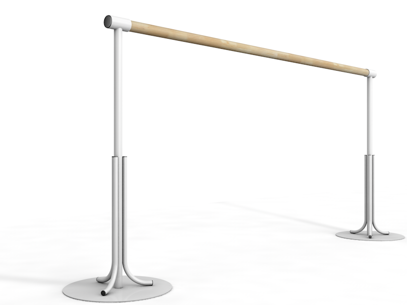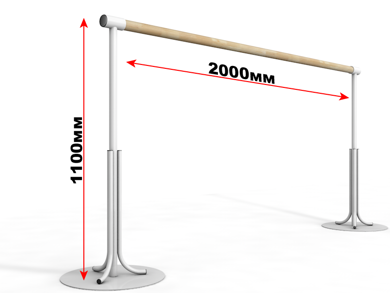 Мобильный балетный станок. Имеет круглое утяжеленное основание из толстого металла диаметром 45 см. Расстояние от пола до центра поручней 110см (по желанию заказчика может изменяться), длина поручней 2м, диаметр 47мм, материал бук. Общий вес конструкции 10 кг.