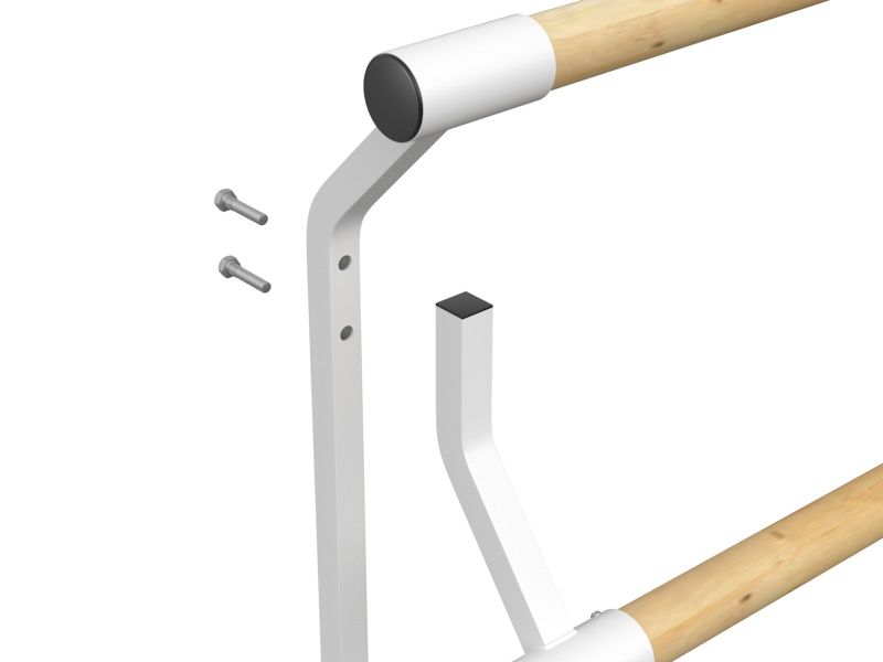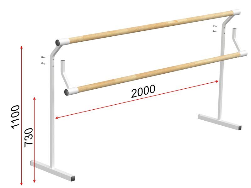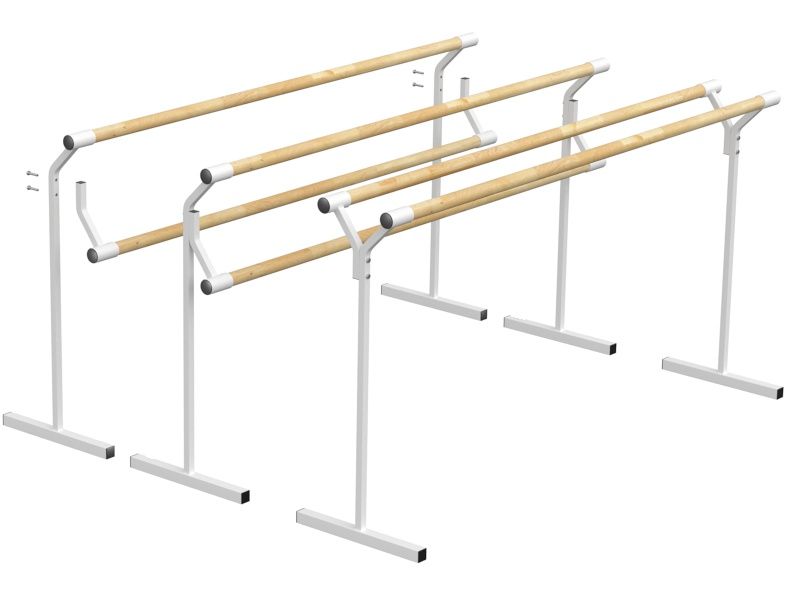 Станок мобильный с переставными поручнями предназначен для использования в танцевальных и хореографических залах. Длина поручней 2 м, диаметр 47 мм, материал бук. Общий вес конструкции 12,7 кг.