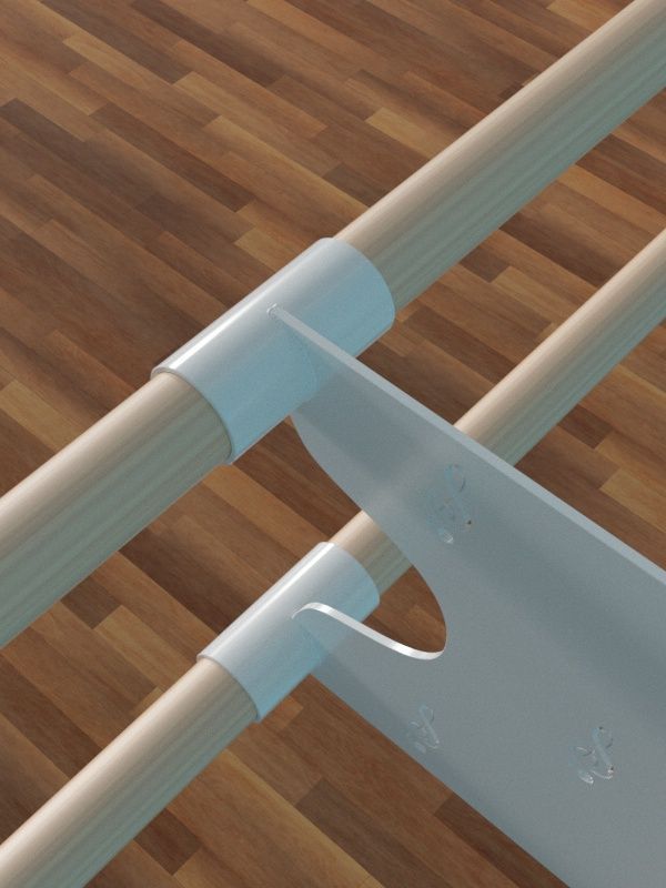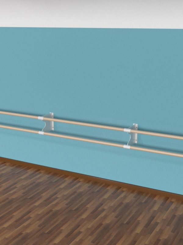 Длина поручня 2 м, диаметр 47 мм, материал - бук. Балетный станок крепится к стене. В каждом кронштейне предусмотрены 4 отверстия для крепления поручня. Вид крепежа зависит от типа стены и подбирается отдельно. Поверхность окрашена полимерным порошковым покрытием в камере полимеризации.
