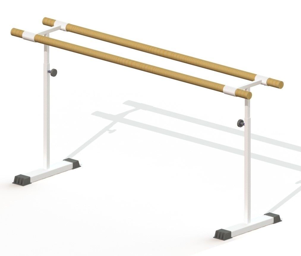 Регулируемый по высоте танцевальный станок с двумя поручнями, расположенными в одной горизонтальной плоскости (расстояние между центрами жердей – 30 см).