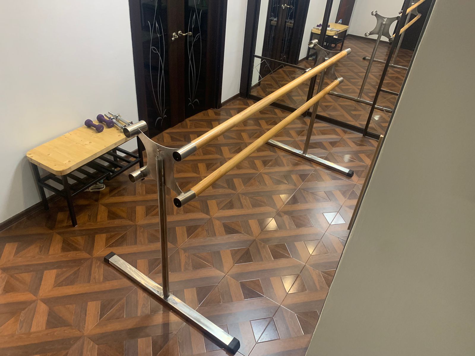 Двухрядный мобильный двухсторонний балетный станок предназначен для установки в танцевальных и хореографических залах.