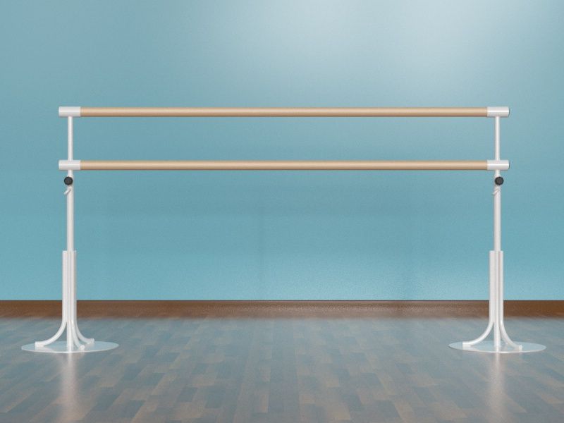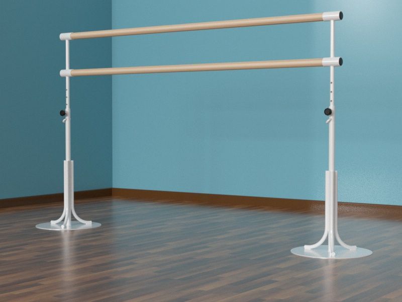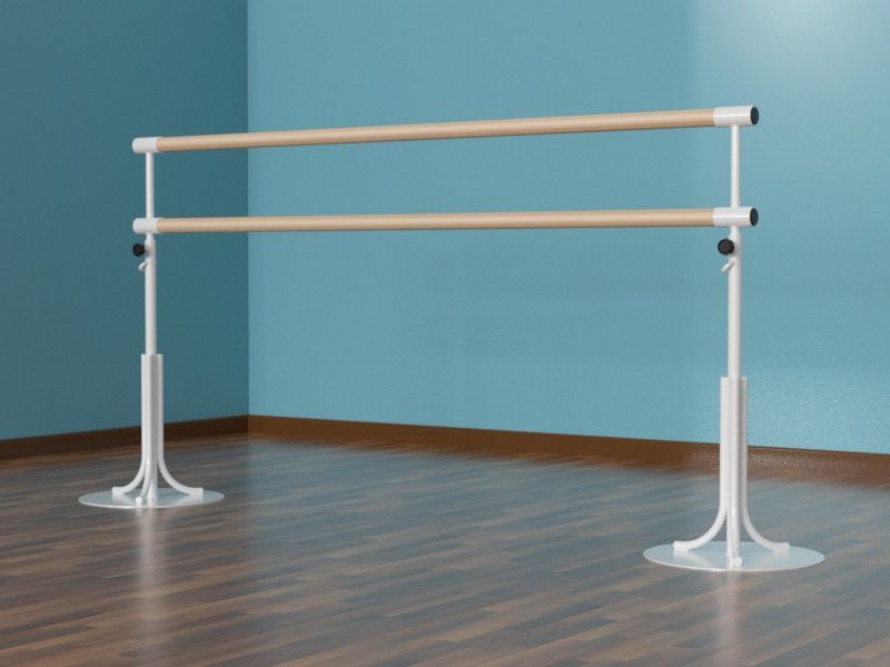 Двухрядный мобильный балетный станок с регулировкой высоты предназначен для установки в танцевальных и хореографических залах.