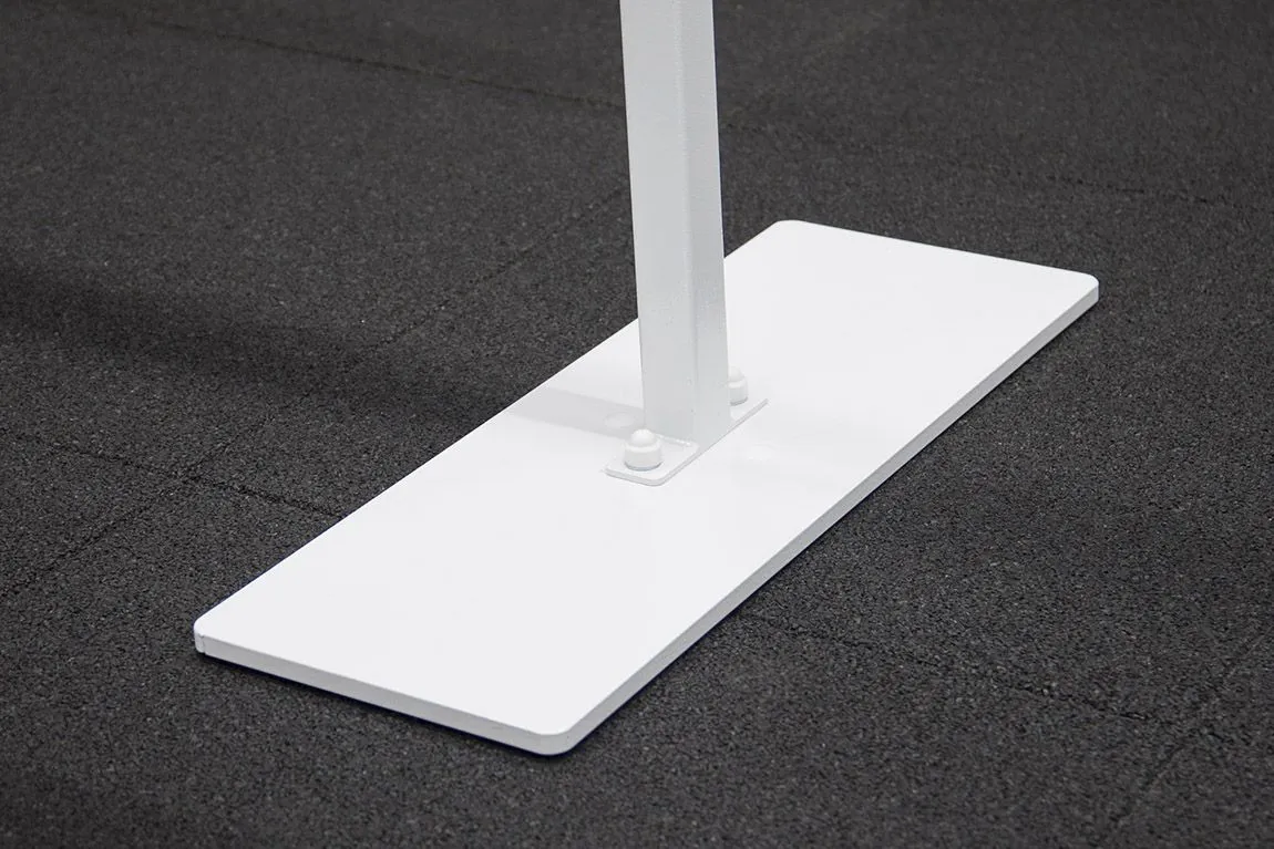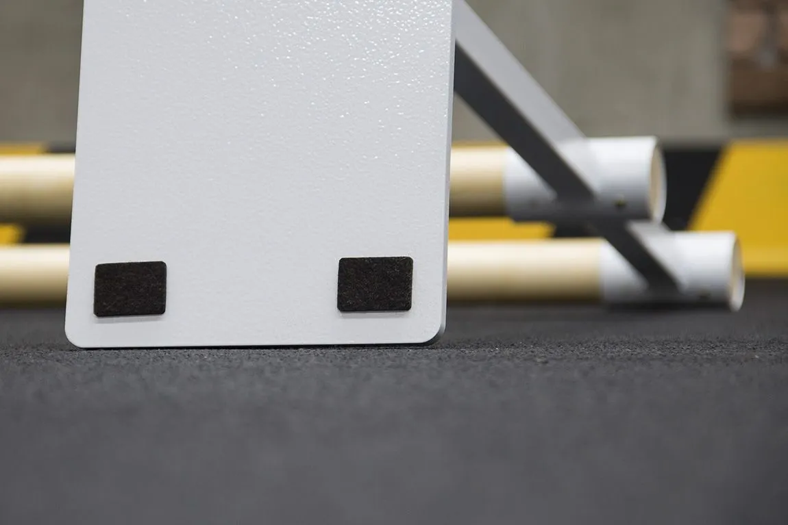 Применяемый утяжелитель имеет довольно внушительный вес – 7 кг. На нижней его части прикрепляется защита пола - благодаря этому поверхность паркета или линолеума останется без царапин и повреждений. Малая высота утяжелителя делает низ стойки практически вровень с поверхностью пола и шанс задеть его ногой во время тренировки очень мал.
