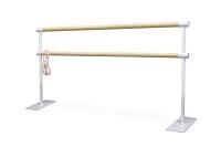 Высота нижнего поручня от пола составляет 74 см, высота верхнего поручня от пола составляет 105 см. Это делает мобильный балетный станок универсальным как для начинающих, так и для профессионалов. Балетный станок имеет длину поручня 2000 мм и подойдет для занятий в любых танцевальных классах.