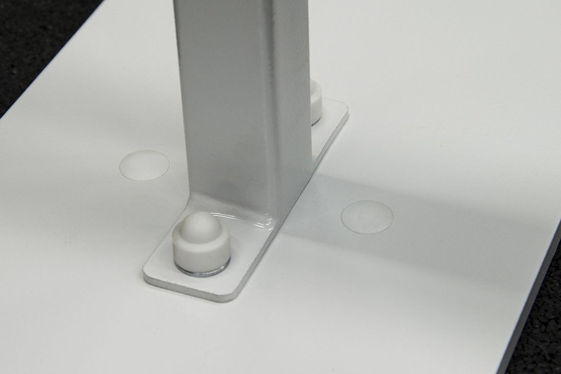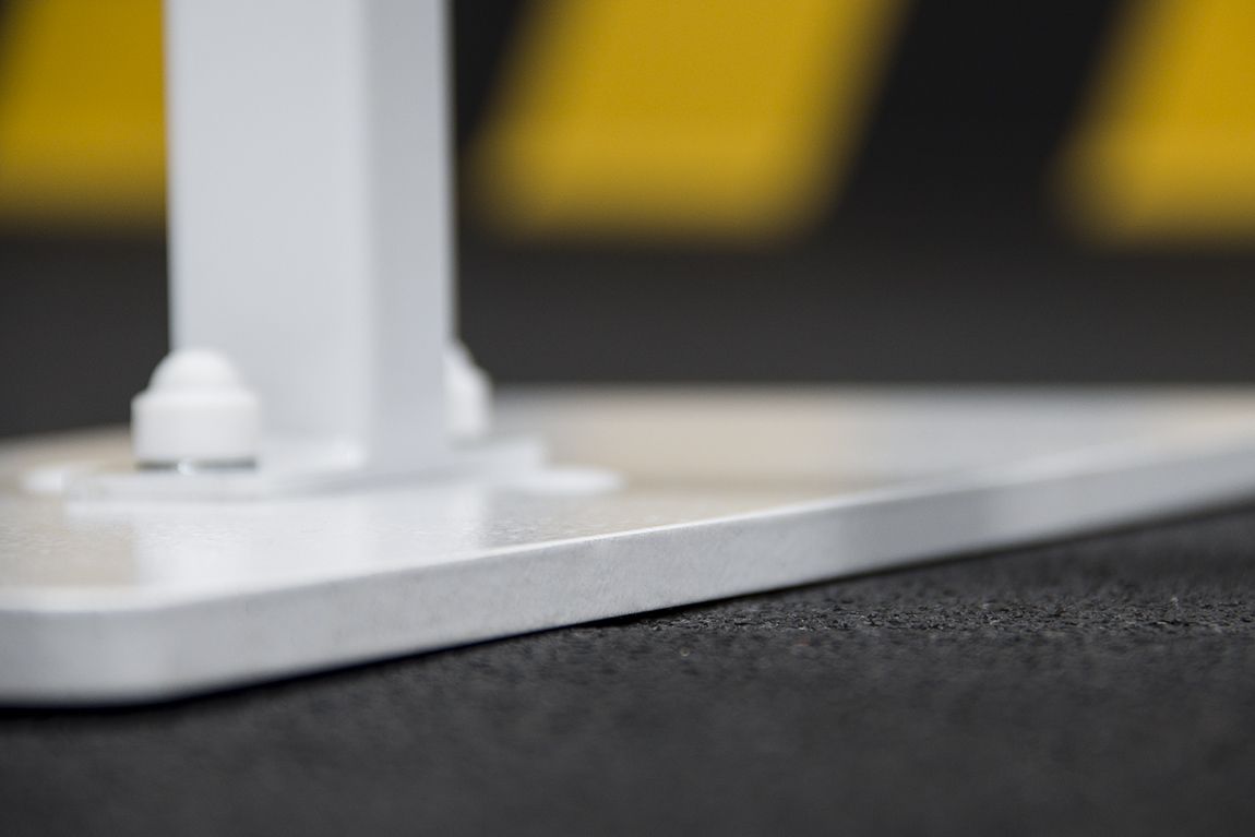 Главным преимуществом является плоское основание на каждой стойке – толщина составляет всего 10 мм. Оно имеет прямоугольную форму размером 490х185 мм. Кромки по периметру основания притуплены, чтобы исключить вероятность получения травмы.