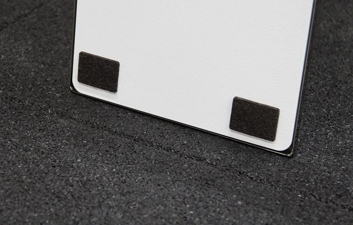 - Плоское основание на каждой стойке – толщина составляет всего 10 мм. Оно имеет прямоугольную форму размером 493х188 мм. Грани основания скруглены и заполированы, чтобы исключить вероятность получения травмы.