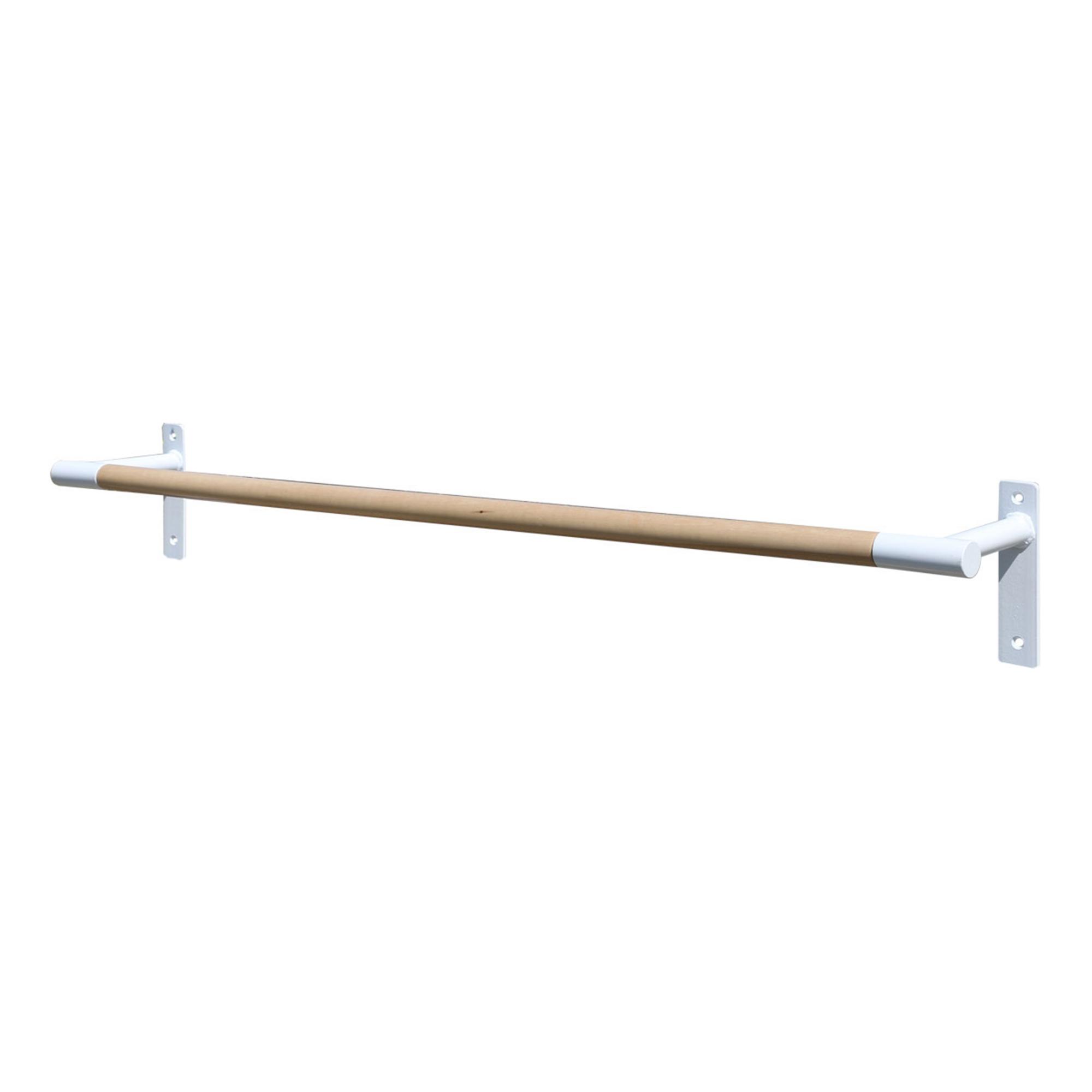Станок хореографический ZSO пристенный, однорядный 2 м, перекладина ø-40 мм БЕРЕЗА. Выполнен из стальных кронштейнов с полимерным покрытием и деревянных перекладин, покрытых прозрачным лаком. Размеры: сечение жерди - 38-41 мм; длина перекладины - 2000 мм; расстояние от стены - 260 мм.