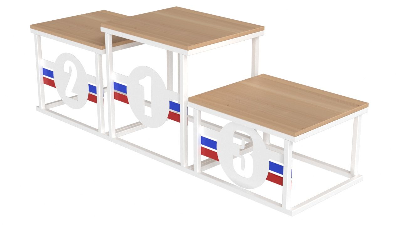 Каркас элементов пьедестала изготовлен из стальной профильной трубы 25х25х1,5 мм, и окрашен порошковой краской. Опорные площадки изготовлены из влагостойкой фанеры толщиной 18 мм и покрыты лаком. Размеры пьедестала указаны на изображении № 2. Изделие поставляется в собранном виде.