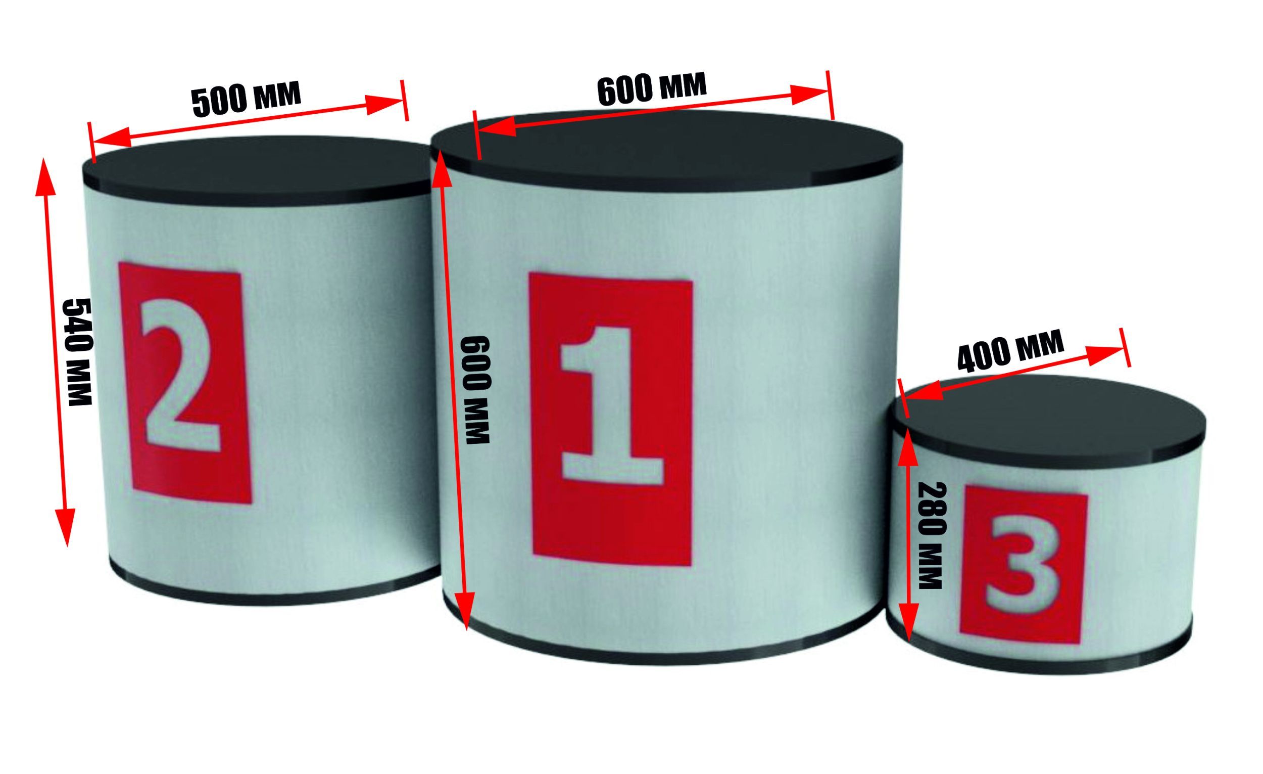 Каркас выполнен из стального профиля 40х40 мм. Верхняя платформа выполнена из фанеры толщиной 18 мм. Боковая сторона цилиндров обшита листовым металлом 1 мм или 1,5 мм и оклеена ПВХ пленкой с декоративным изображением.