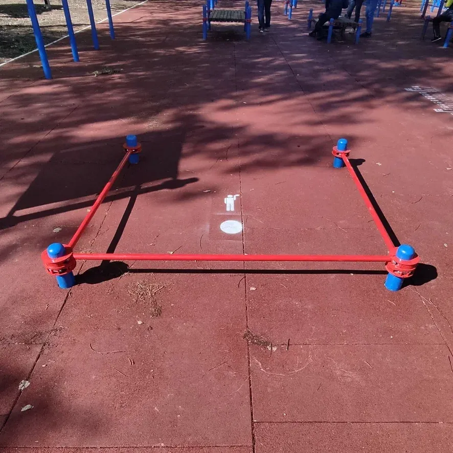 Комплекс может быть размещен на площадке для сдачи нормативов как самостоятельно (вместе с покрытием-помостом GTS2015_13890), так и в составе общей площадки для сдачи нормативов, имеющей общее покрытие из резиновой плитки или иное покрытие.