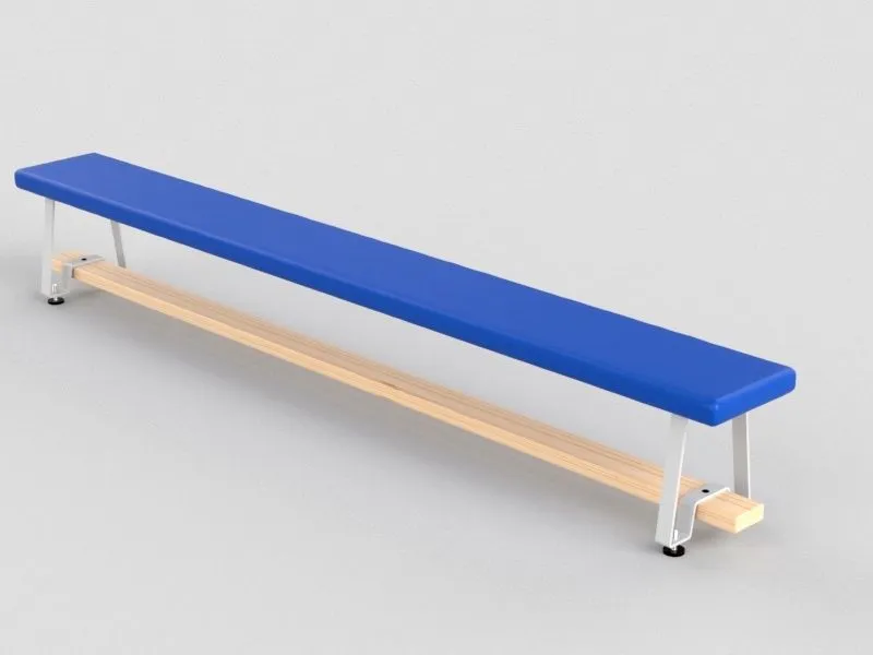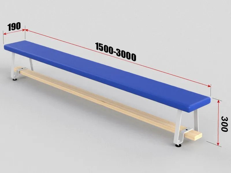 Доски шлифованные толщиной 30 мм, покрытые лаком. Металлические опоры выполнены из полосы 40х4 мм, сидение и нижняя царга из массива сосны. Покрытие скамеек из спортивной искусственной кожи, мягкая прокладка - поролон толщиной 30 мм. Регулируемые по высоте ножки позволяют избегать перекосов скамьи даже на неровном основании.
