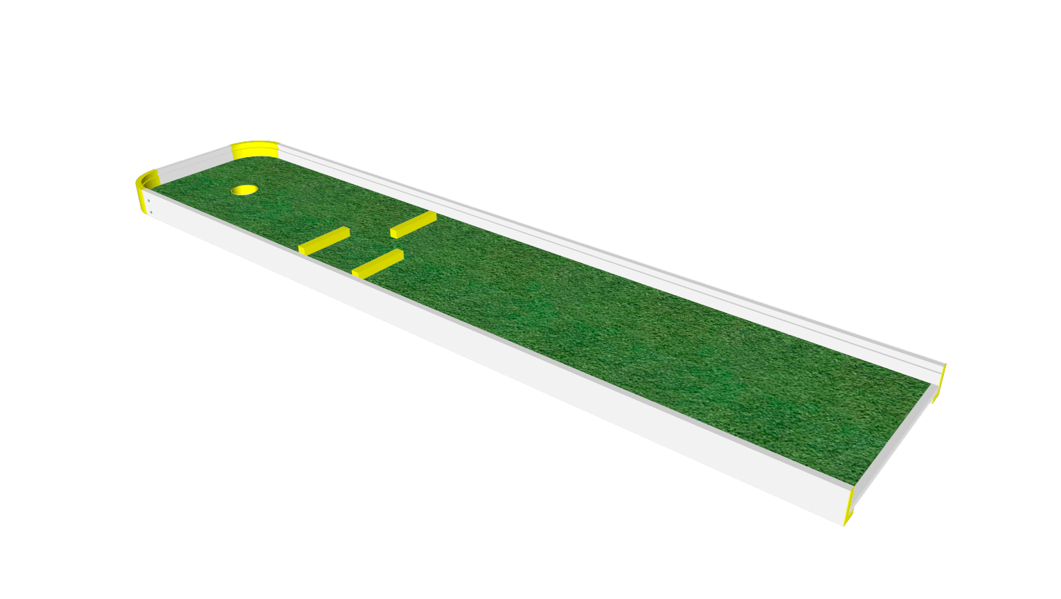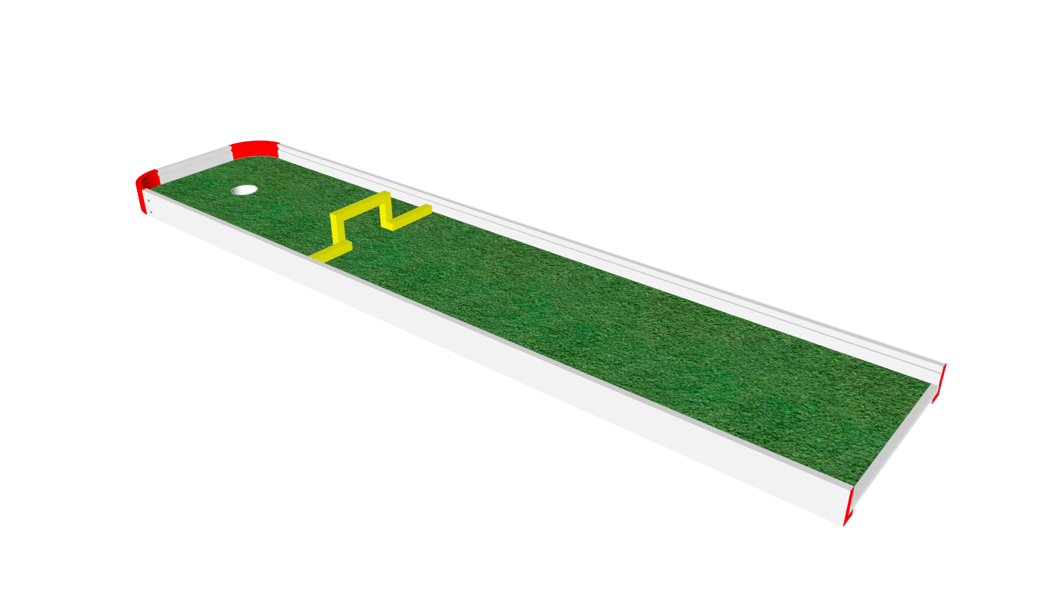 Девять дорожек для игры в мини гольф, Алюминиевый борт "Crearus" (порошковая окраска- по RAL), основание композитная панель 3 мм, игровая поверхность искусственная трава 8 мм (зеленая). В комплекте базовый комплект фигур) Стойка для клюшек, клюшки, фигуры, мячи приобретаются отдельно