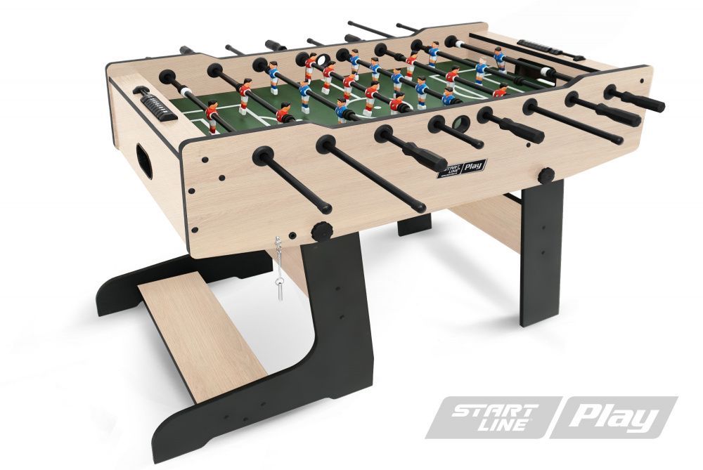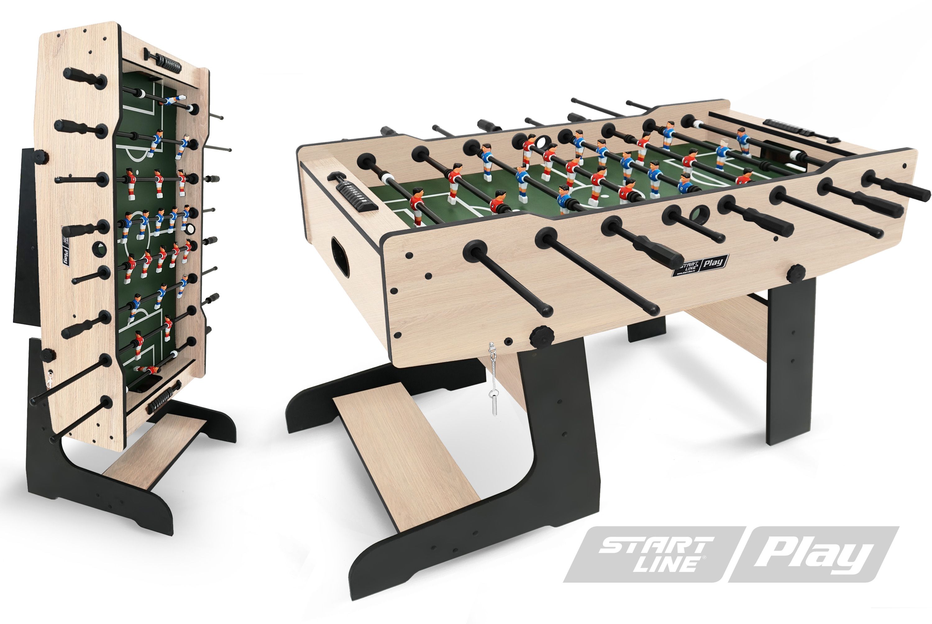 Корпус и игровое поле выполнены из высокопрочных материалов. Модель привлекательна своей компактностью, в сложенном виде она занимает минимальную площадь. Конструкция позволяет легко установить стол практически в любом месте, а возможность трансформации поможет быстро привести стол в игровое положение и сэкономить место при хранении. Монтаж игрового стола прост, его легко собрать самостоятельно, в комплекте предусмотрена инструкция по сборке.
