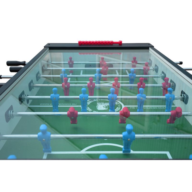 - игровое поле из матового ударопрочного стекла, благодаря чему оно идеально ровное, а поверхность поля позволяет осуществлять контроль мяча с необычайной легкостью;