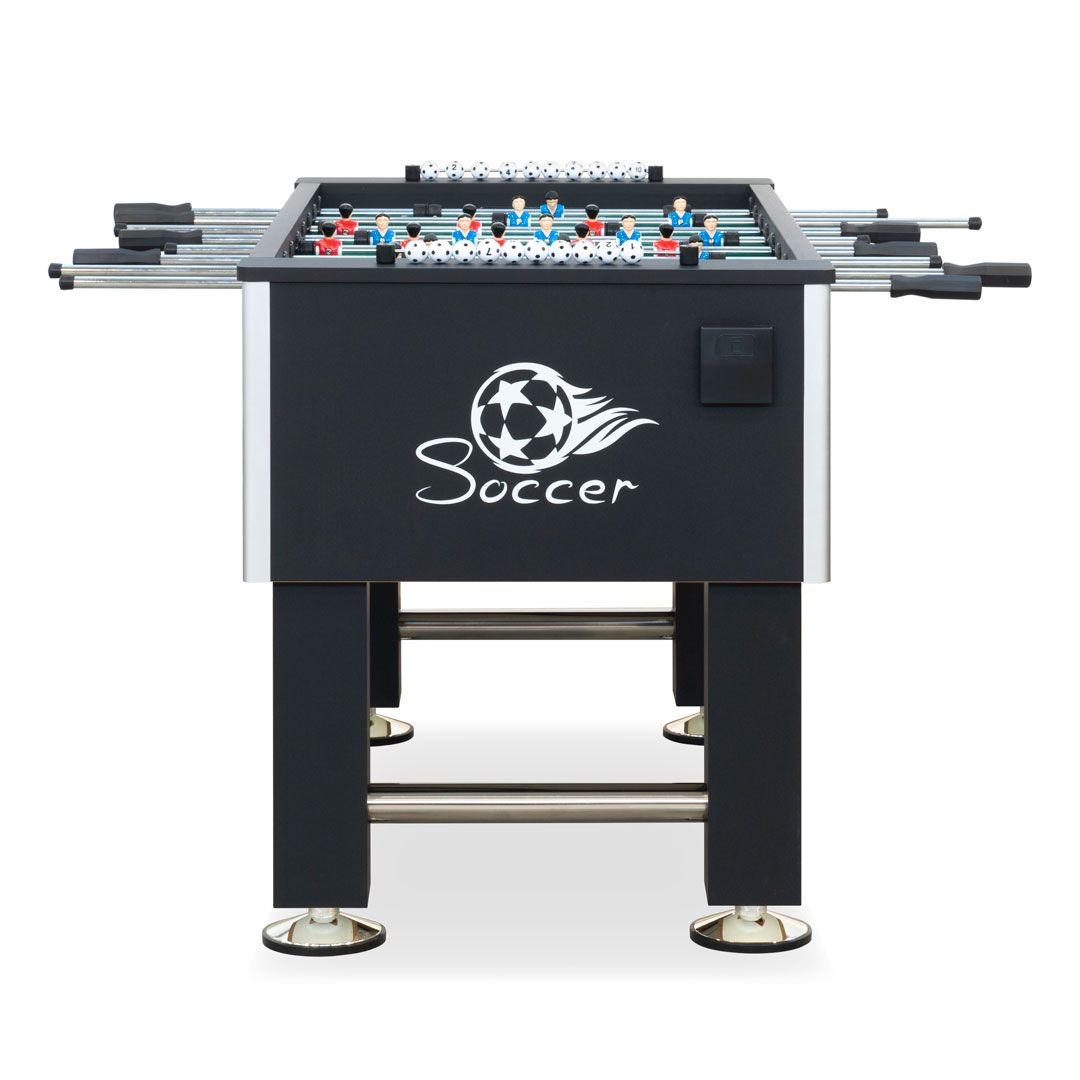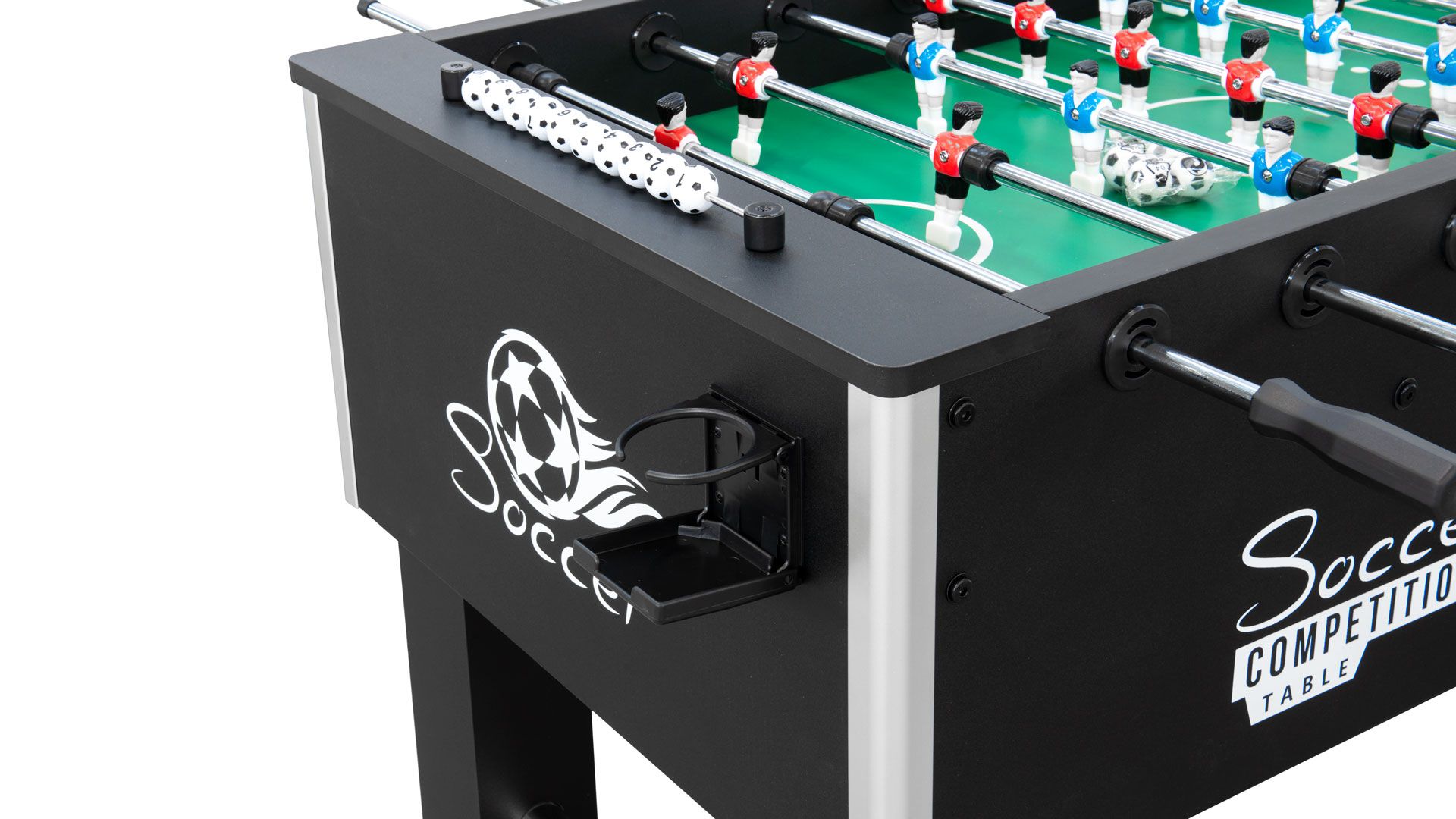 Профессиональное игровое поле. Поверхность выполнена из ударопрочного МДФ толщиной 9 мм с ПВХ ламинацией. Это придает полю дополнительную стойкость к царапинам и обеспечивает идеальное скольжение мяча. Классический зеленый цвет снижает нагрузку на глаза во время длительных игровых сессий.