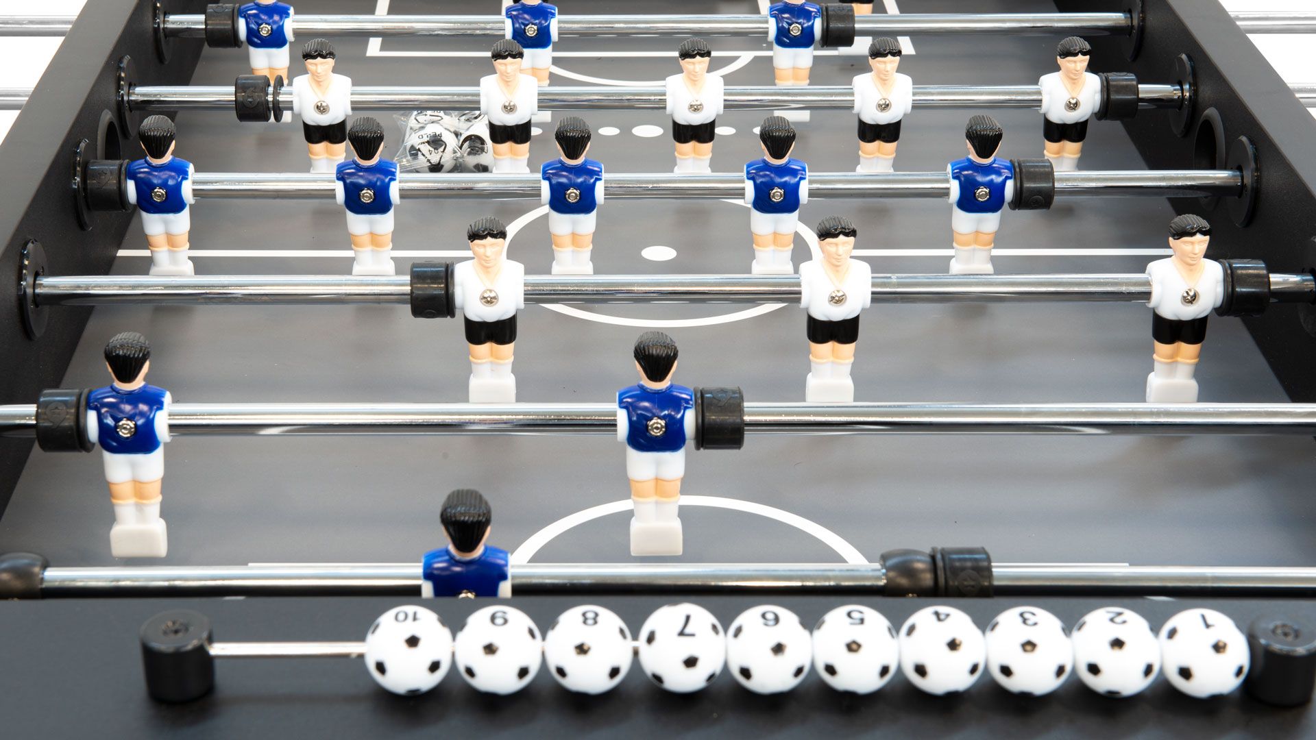 Износостойкое игровое поле. Поверхность выполнена из ударопрочного МДФ толщиной 9 мм с ПВХ ламинацией. Это придает полю исключительную стойкость к царапинам и обеспечивает идеальное скольжение мяча. Классический зеленый цвет поля снижает нагрузку на глаза даже при многочасовых игровых сессиях.