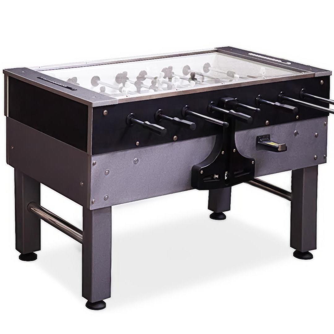 - Добавленный жетоноприемник обеспечивает удобство платежей и помогает организовать коммерческую эксплуатацию стола, делая его прекрасным дополнением к любому бизнесу в сфере развлечений.